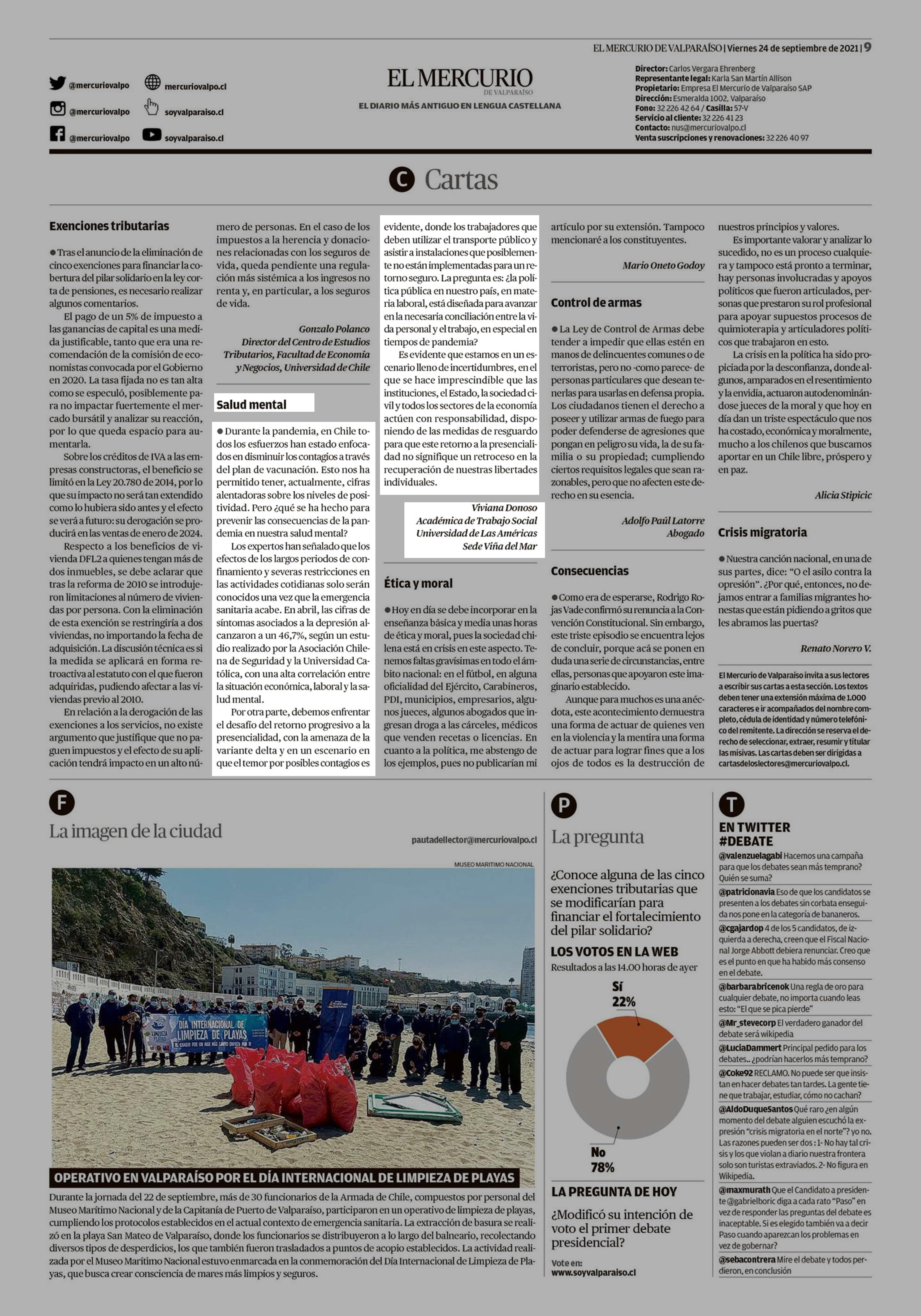 Salud mental 24-09-2021 El Mercurio de Valparaíso |