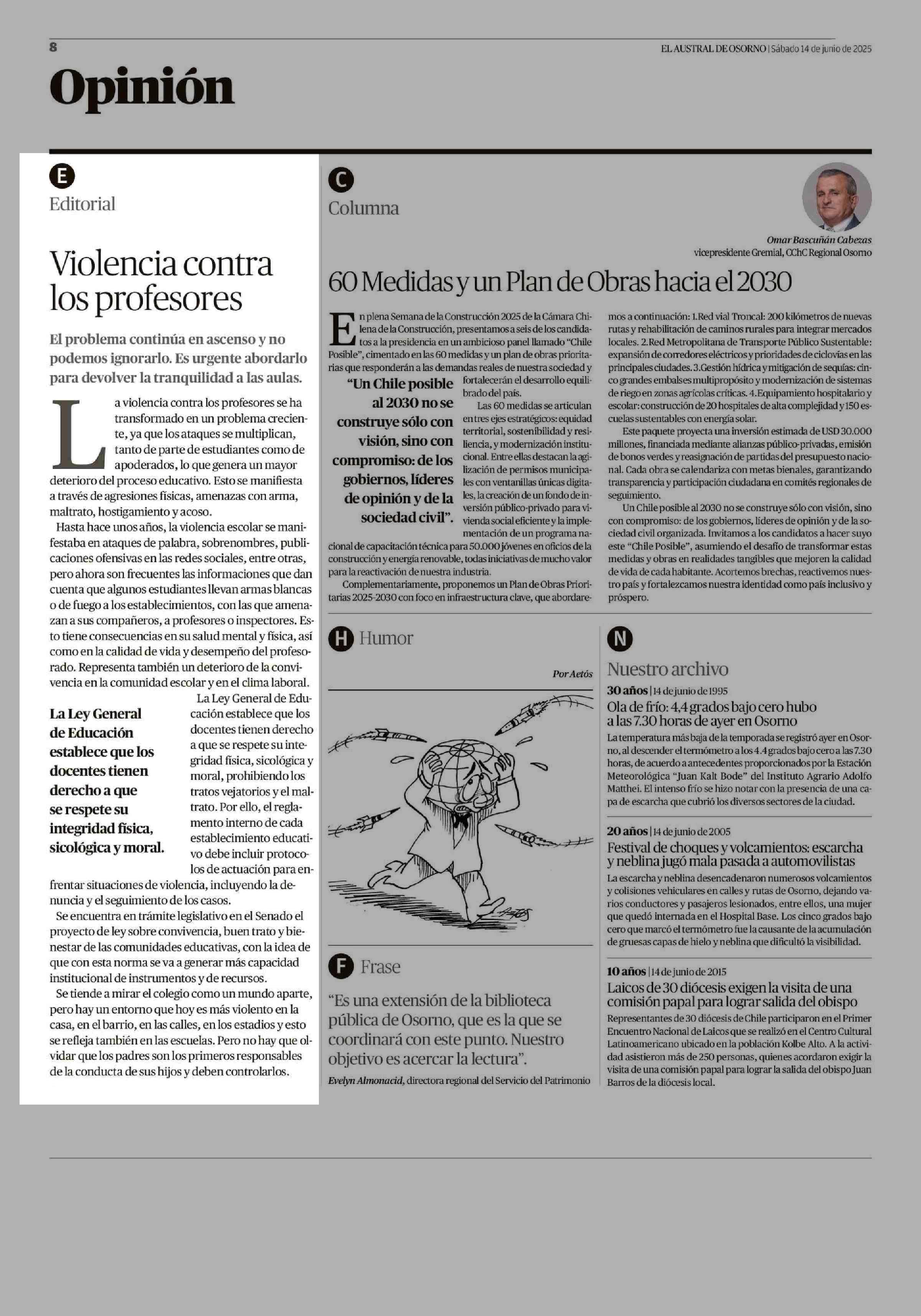 Violencia contra los profesores 14-06-2025 El Austral de Osorno |
