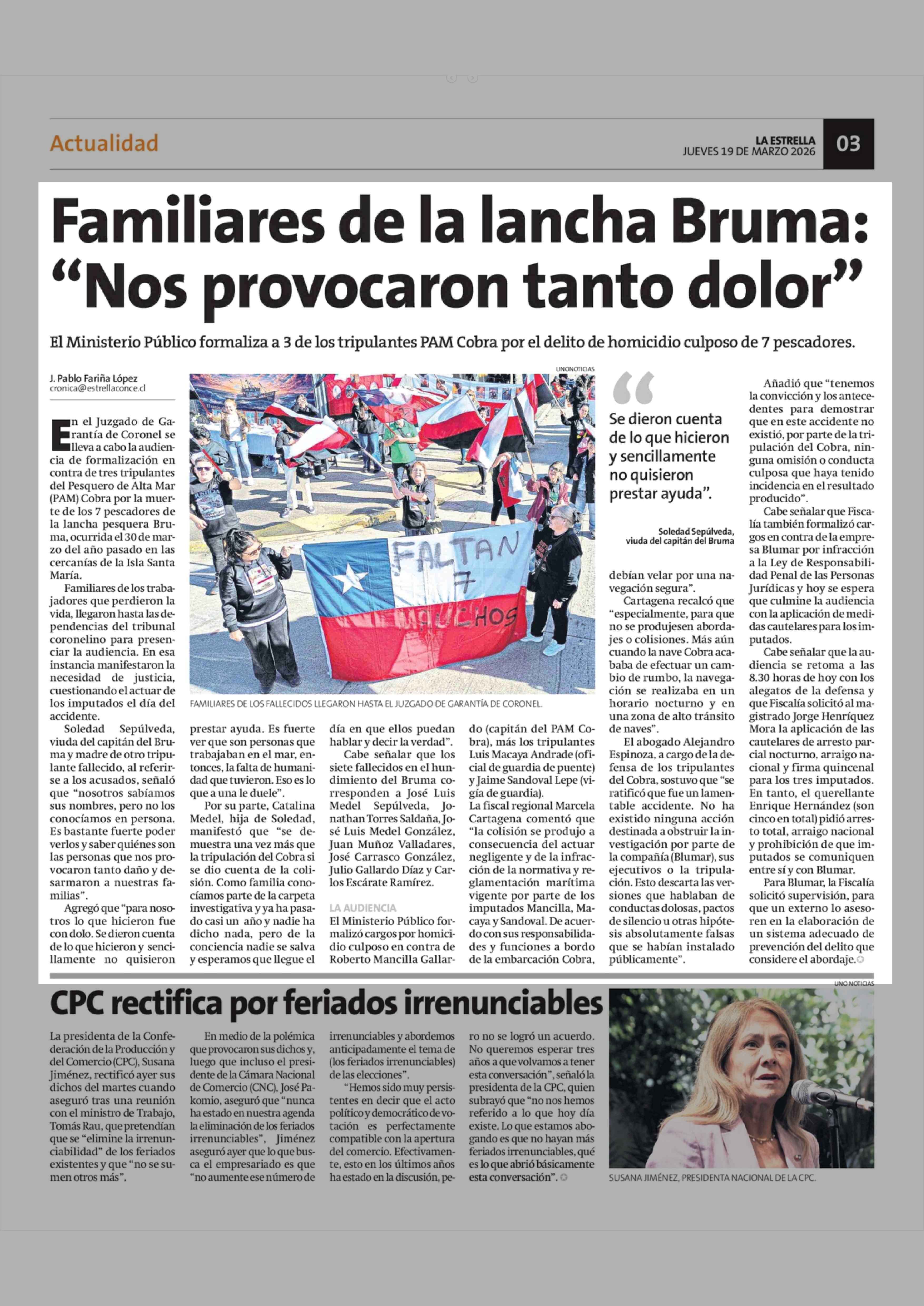 Familiares de la lancha Bruma: "Nos provocaron tanto dolor" 19-03-2026 La Estrella de Concepción |