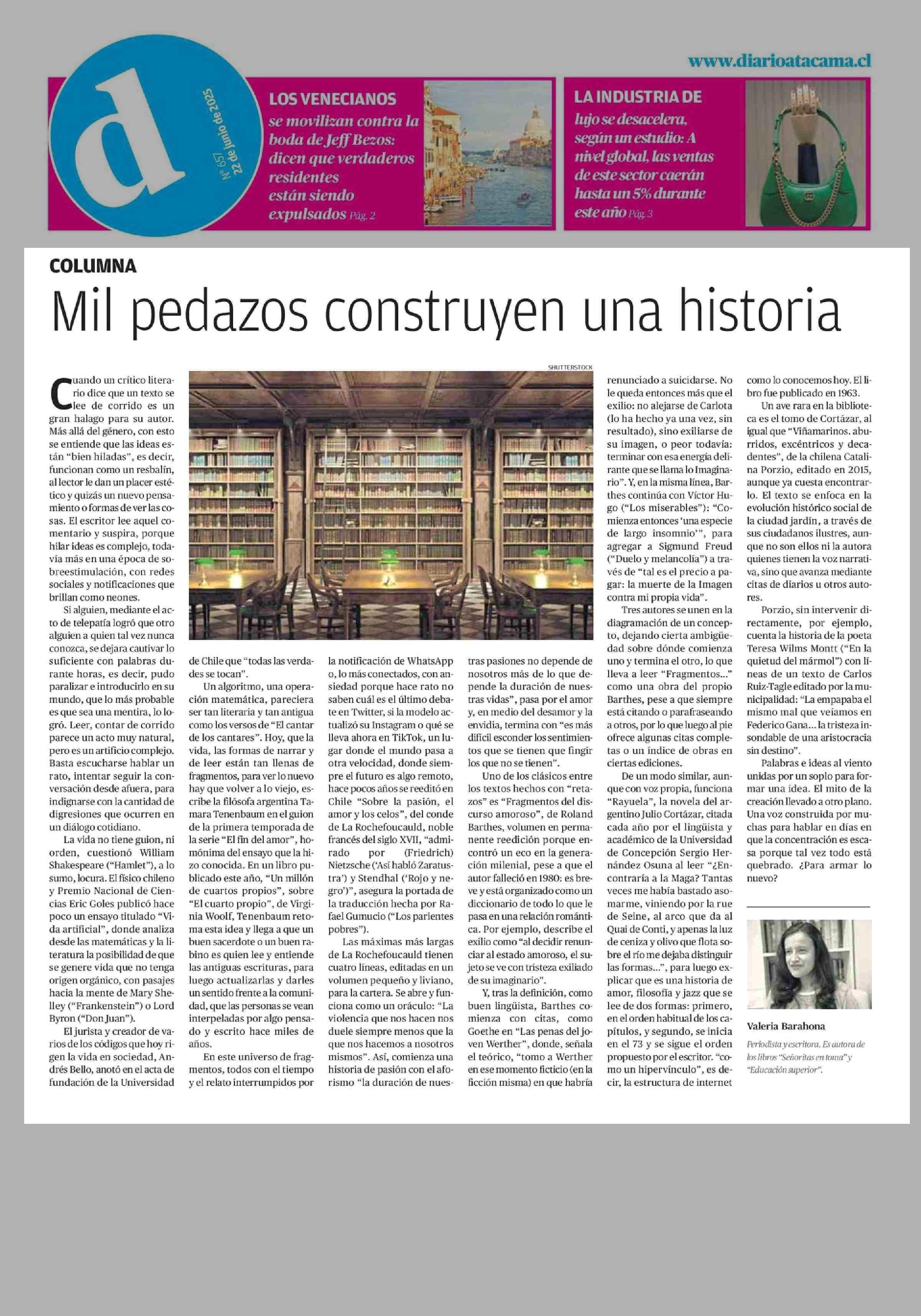COLUMNAS DE OPINIÓN: Mil pedazos construyen una historia 22-06-2025 El Diario de Atacama |
