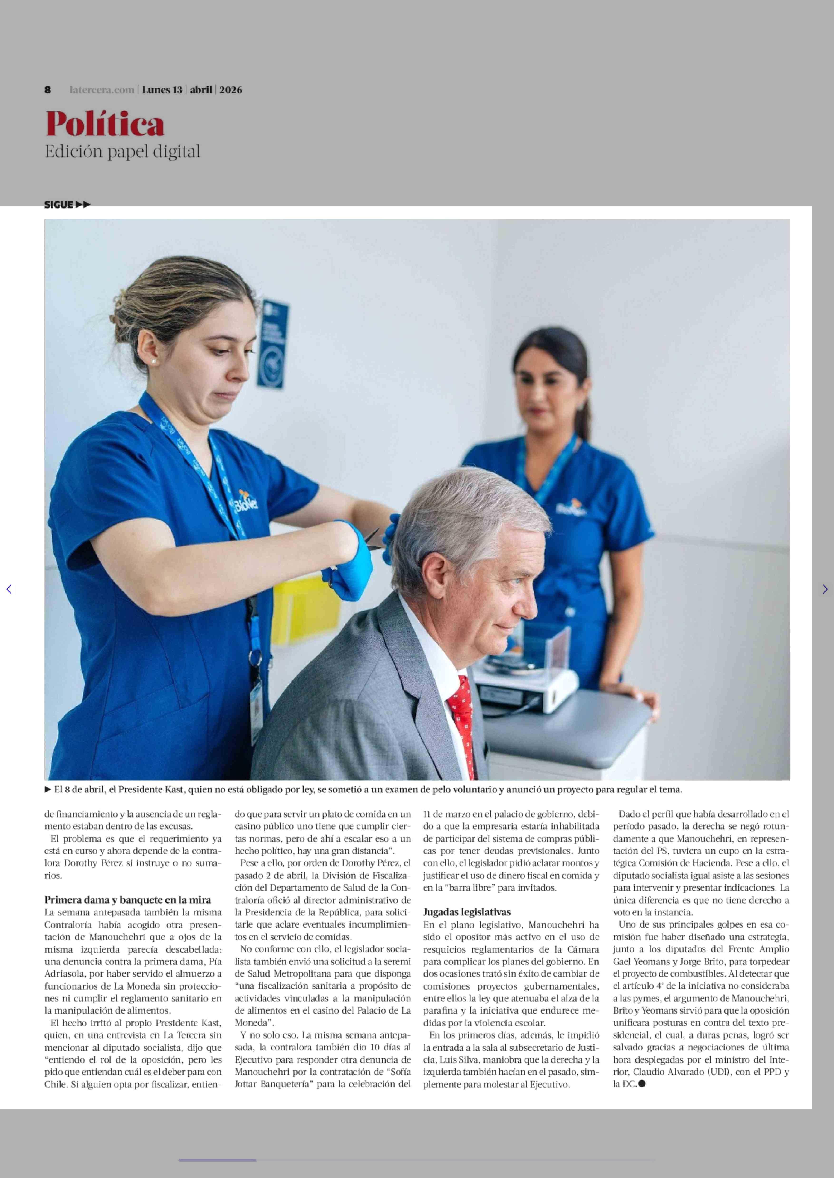 Las jugarretas que han convertido a Manouchehri (PS) en el principal dolor de cabeza de Kast 13-04-2026 La Tercera |