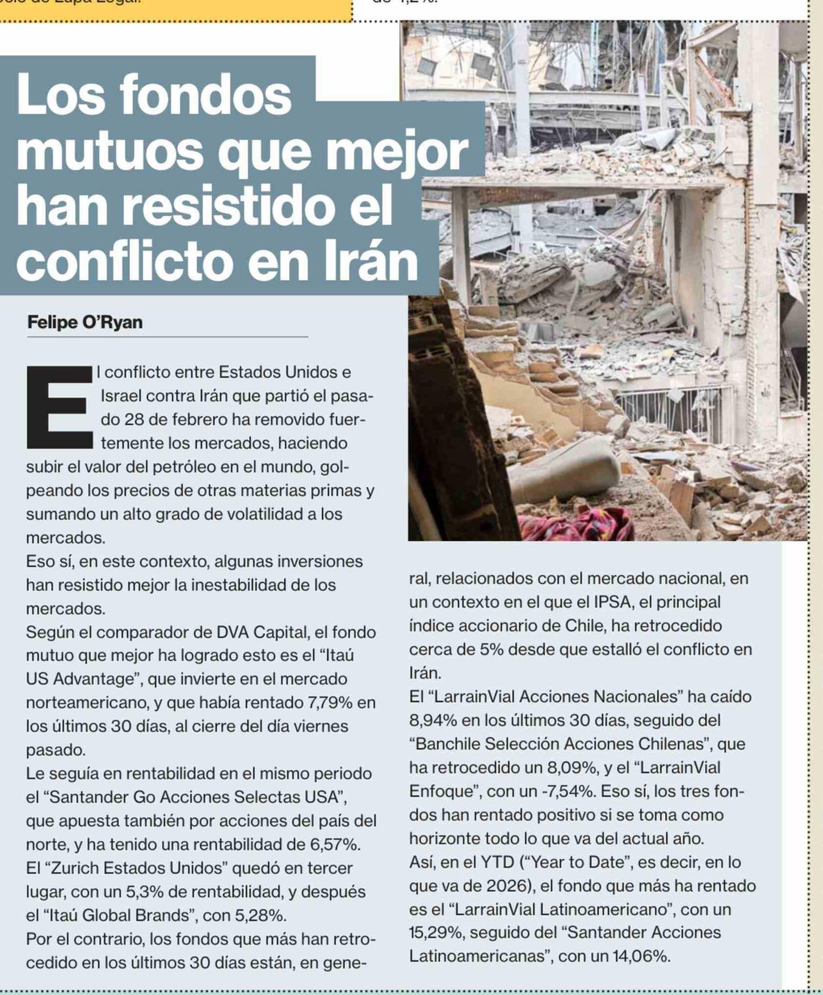Los fondos mutuos que mejor han resistido el conflicto en Irán 16-03-2026 La Segunda |