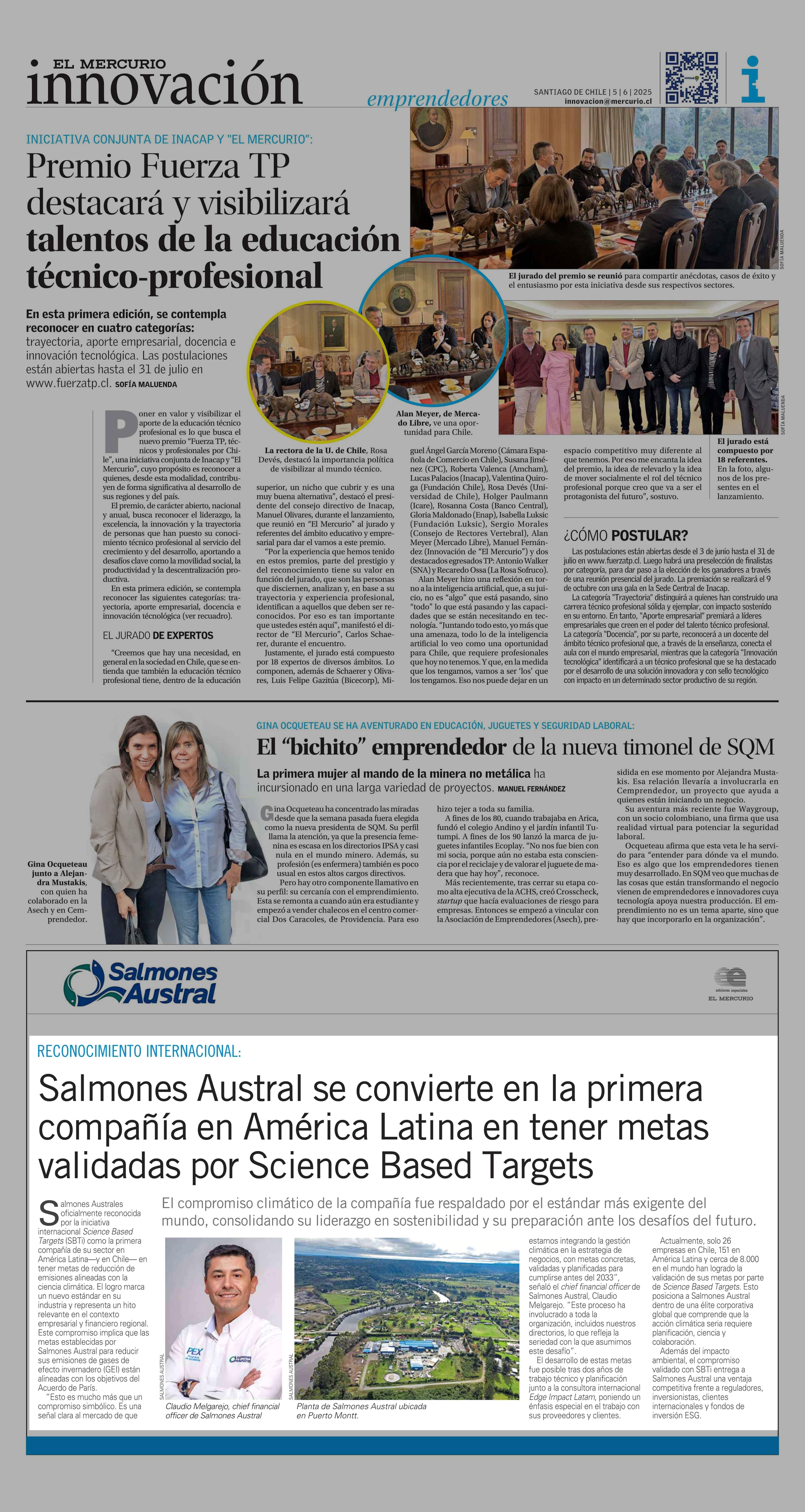 Salmones Austral se convierte en la primera compañía en América Latina en tener metas validadas por Science Based Targets 05-06-2025 El Mercurio |