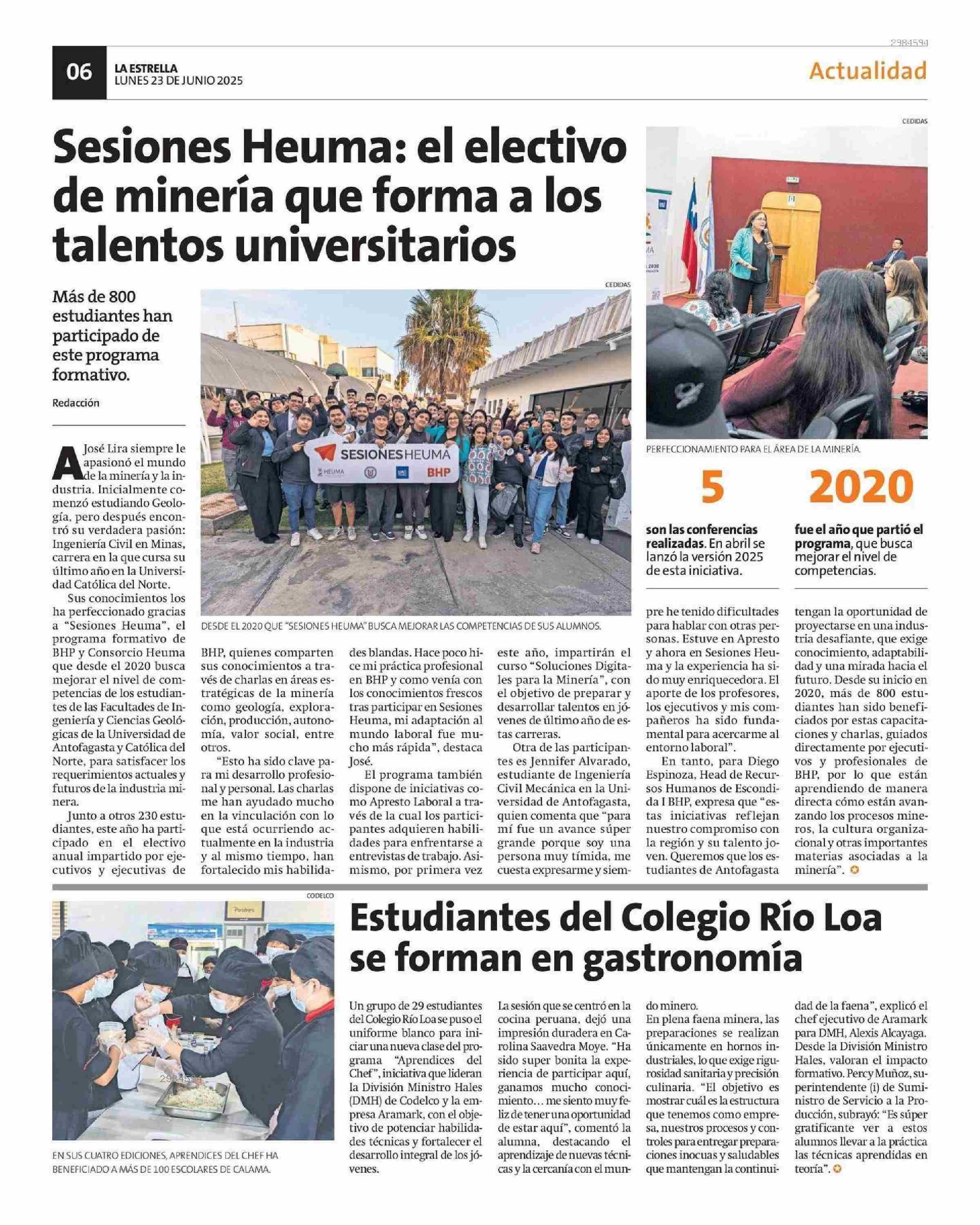 Estudiantes del Colegio Río Loa se forman en gastronomía 23-06-2025 La Estrella de Antofagasta |