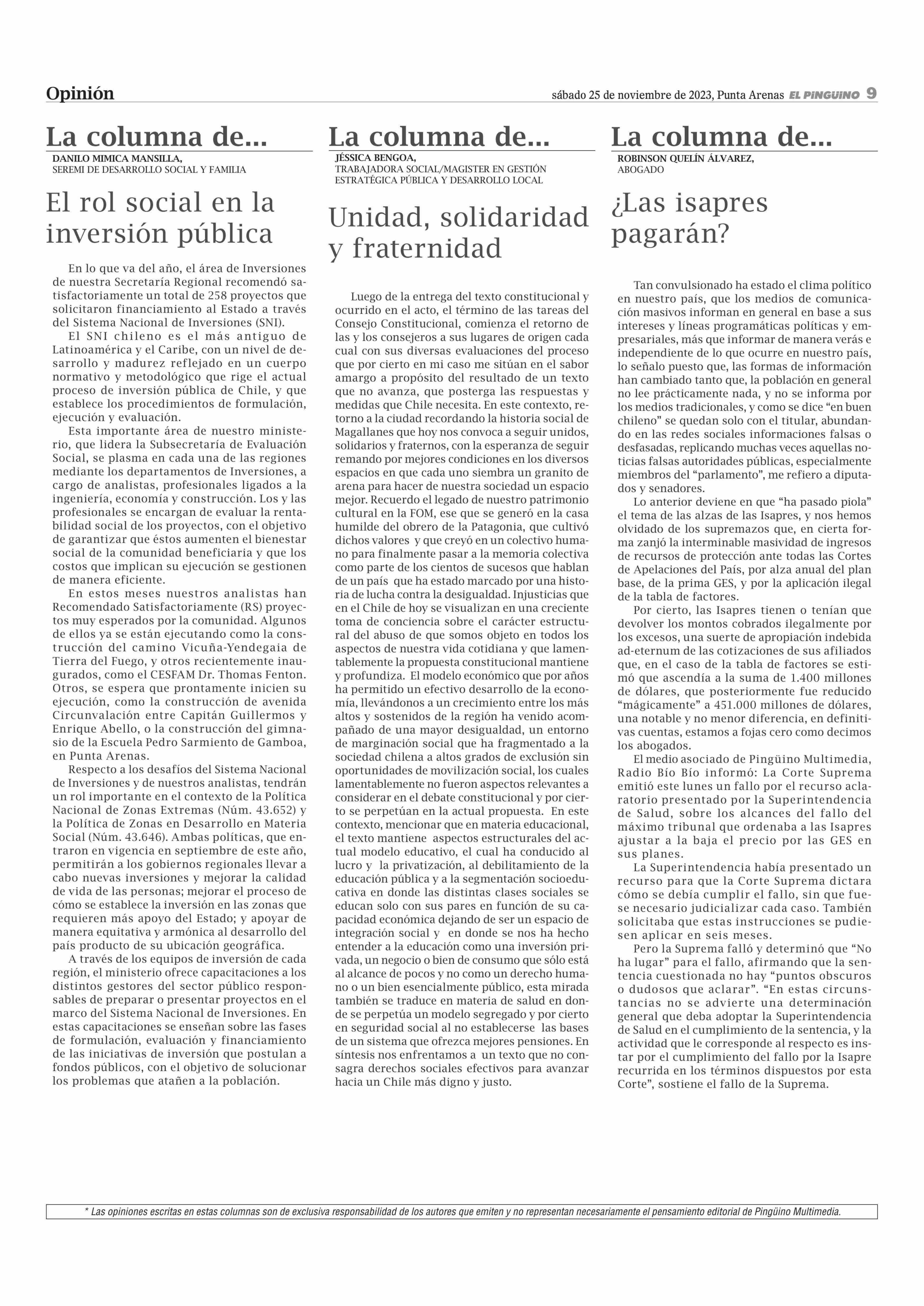 La columna de... rol social en la inversión pública 25-11-2023 El Pingüino |