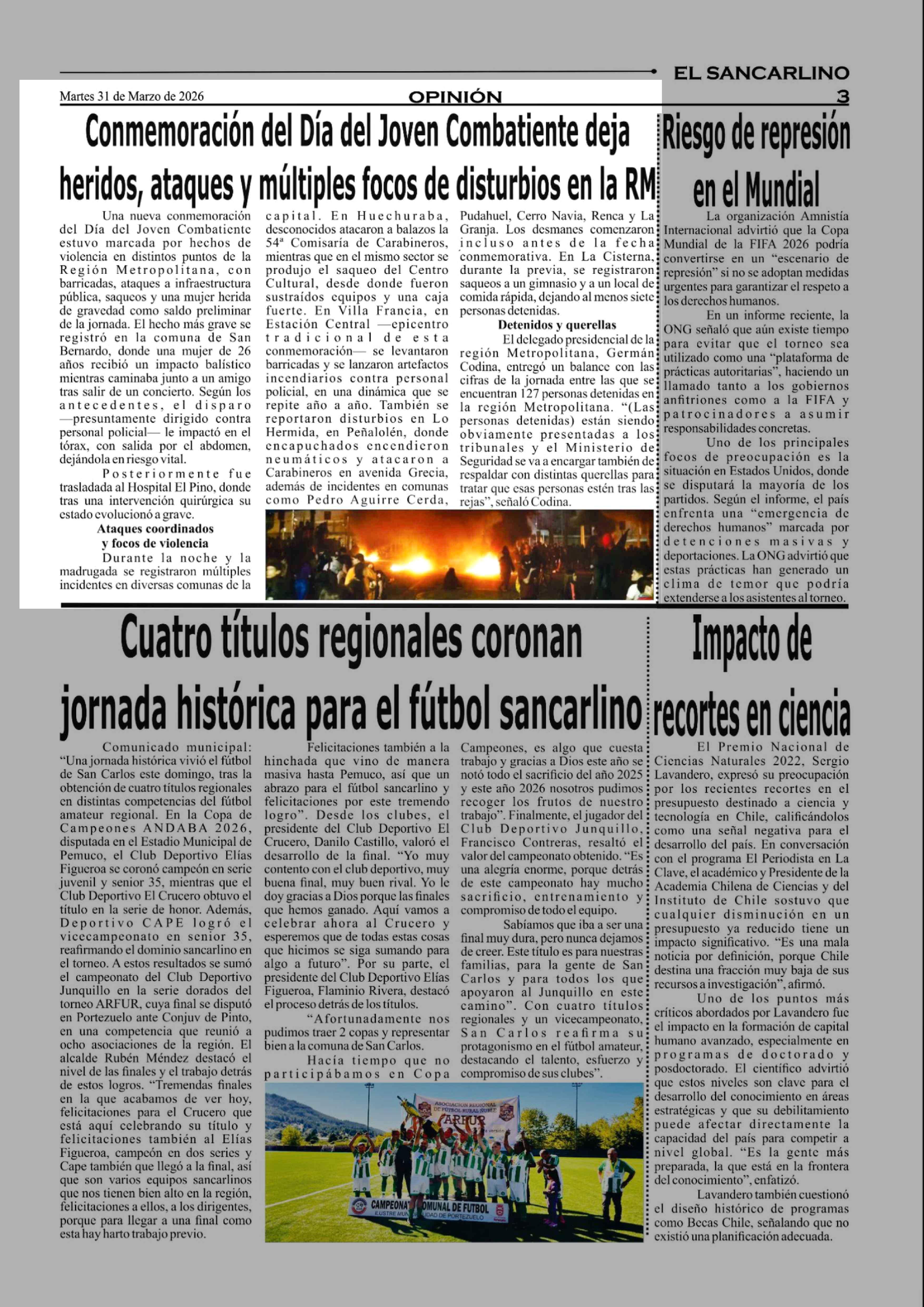 Fecha: 31-03-2026 Sector: Noticia general Región: Región del Ñuble