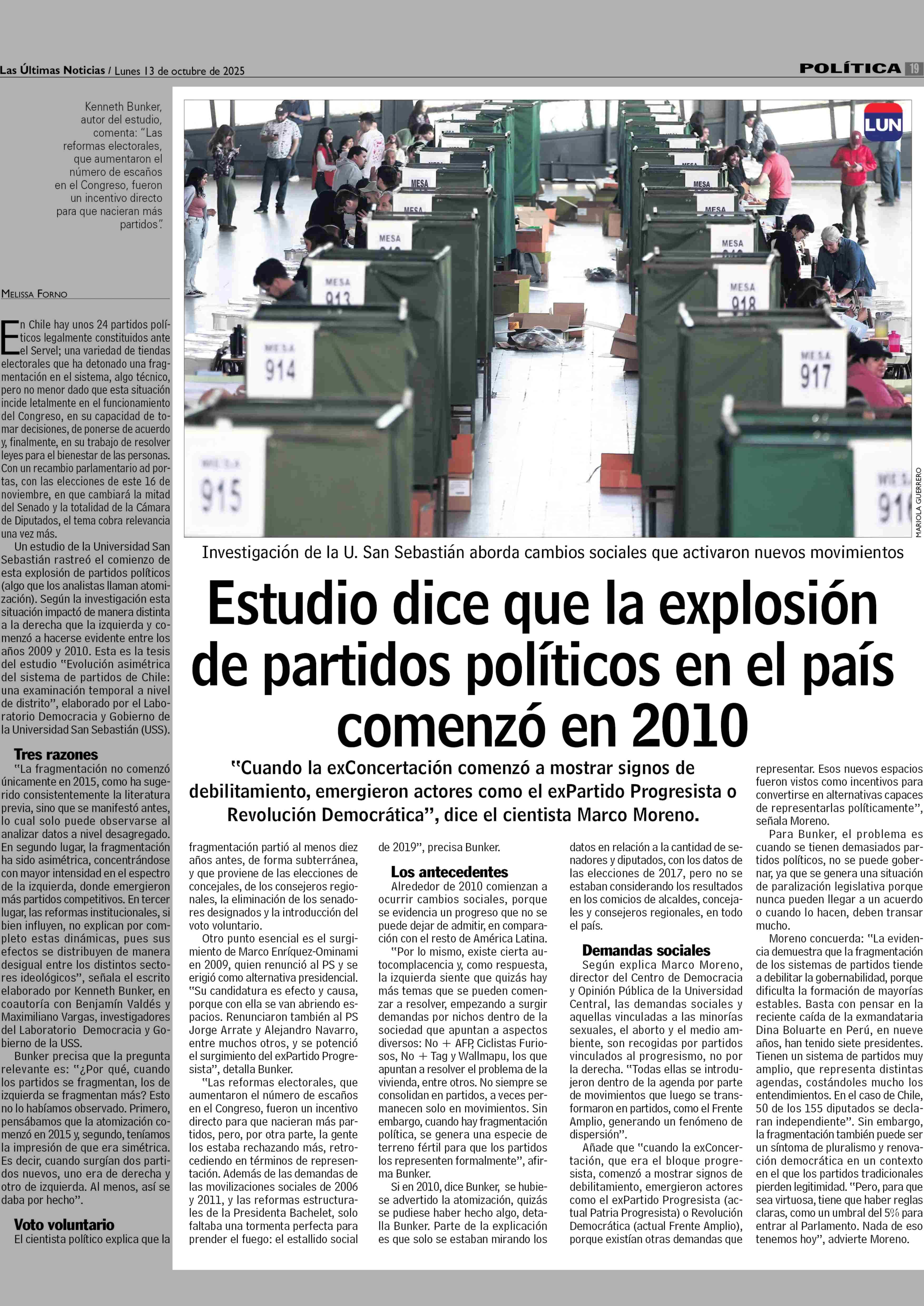 Estudio dice que la explosión de partidos políticos en el país comenzó en 2010 13-10-2025 Las Últimas Noticias |