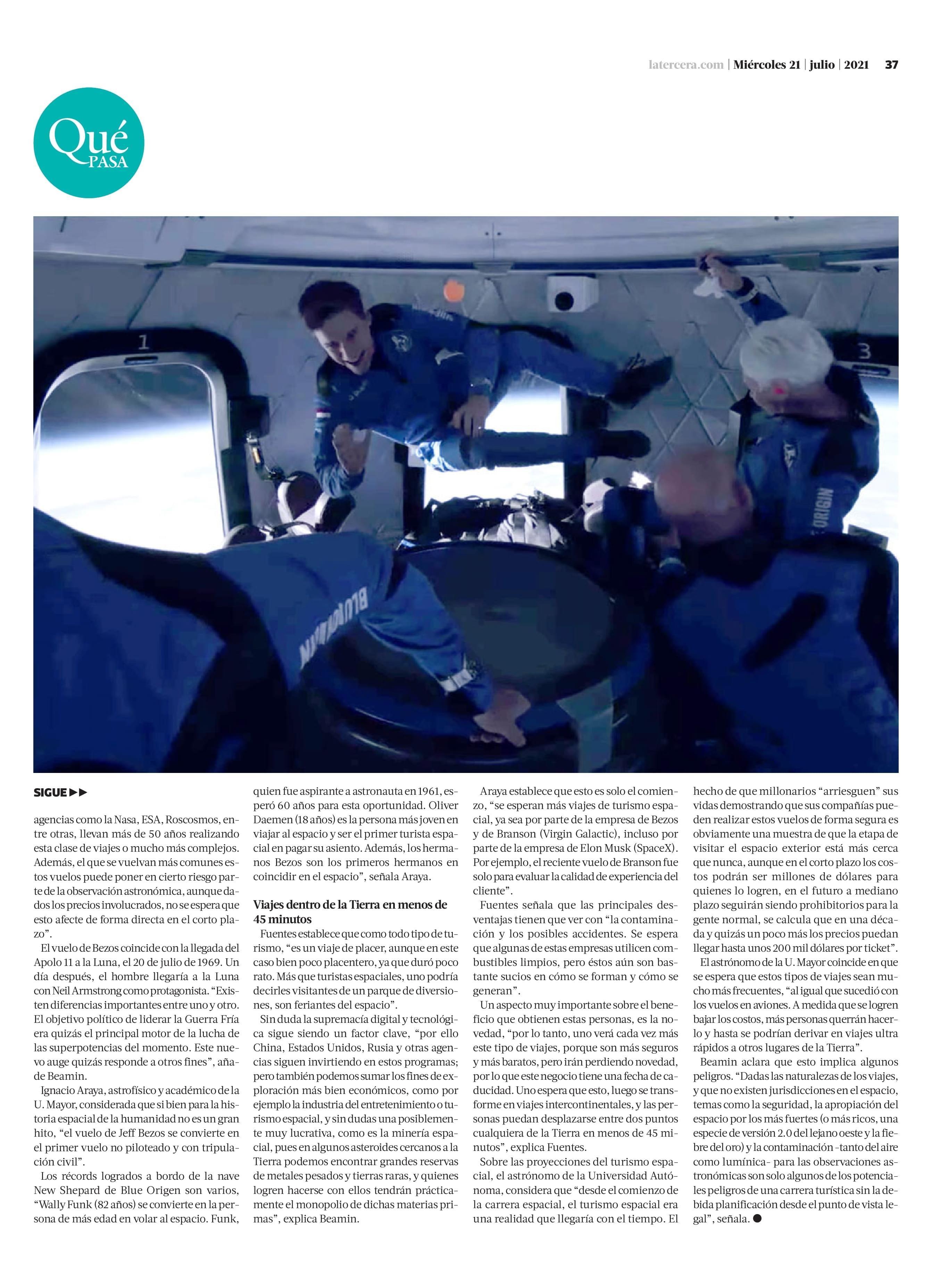 Jeff Bezos, Richard Branson y Elon Musk ¿Cuál es el aporte de esta “nueva carrera espacial”? 21-07-2021 La Tercera |
