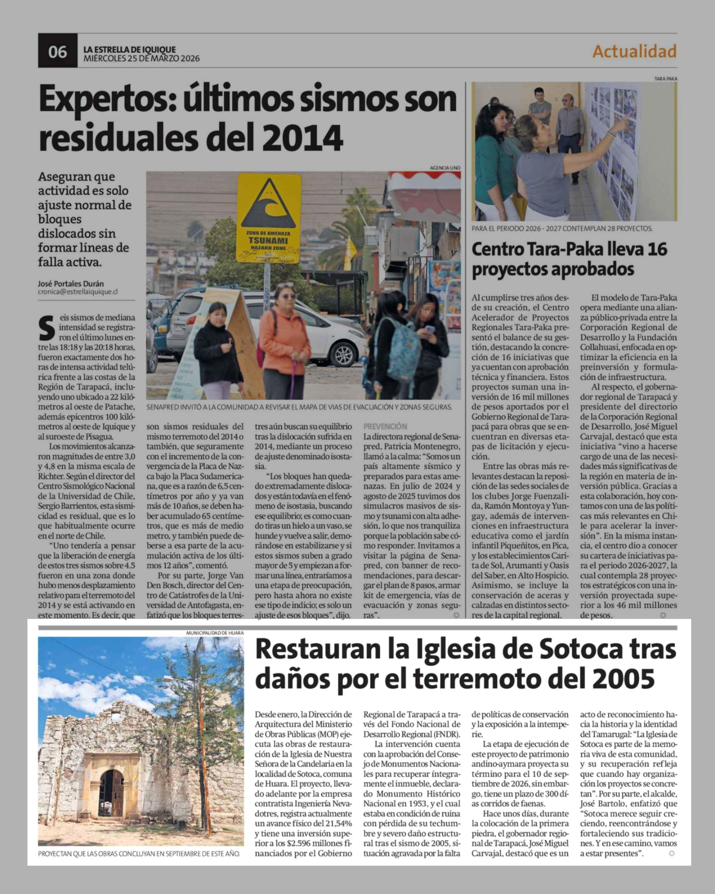 | Fecha: | 25-03-2026 | Sector: | Noticia general | Región: | Región de Tarapacá |