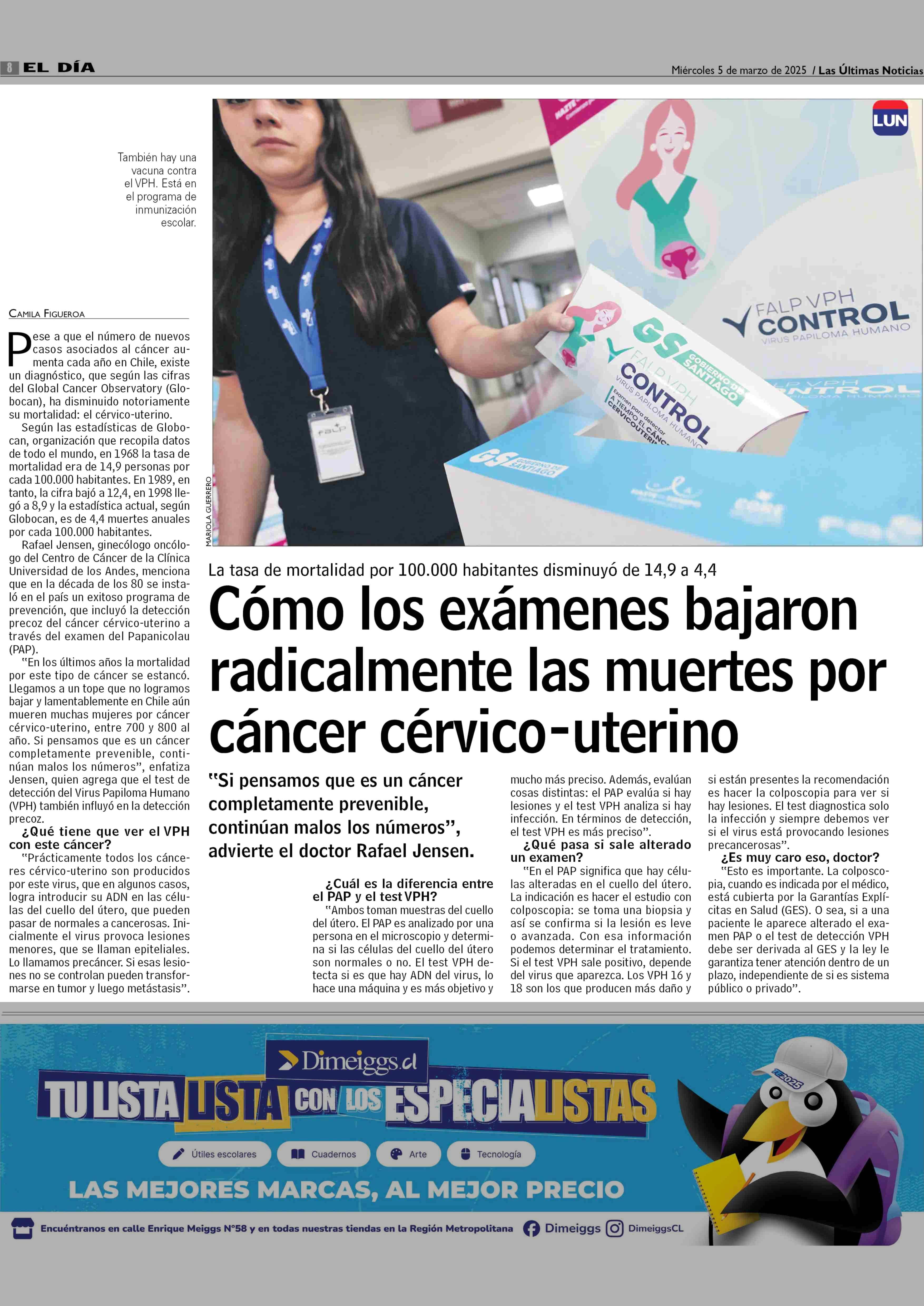 Cómo los exámenes bajaron radicalmente las muertes por cáncer cérvico-uterino 05-03-2025 Las Últimas Noticias |