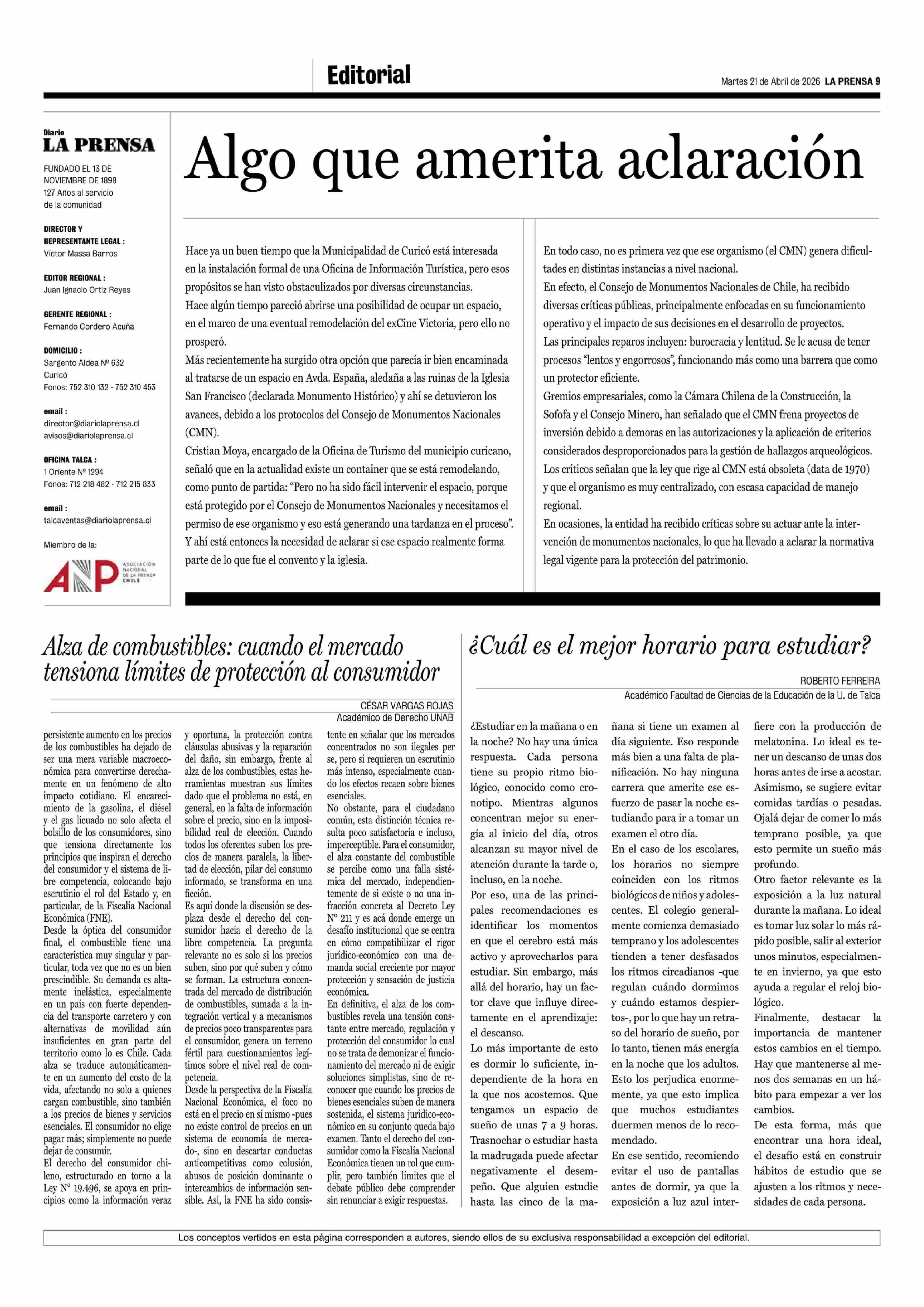 Fuente: La Prensa de Curicó (La Prensa de Curicó) Página(s): 9
