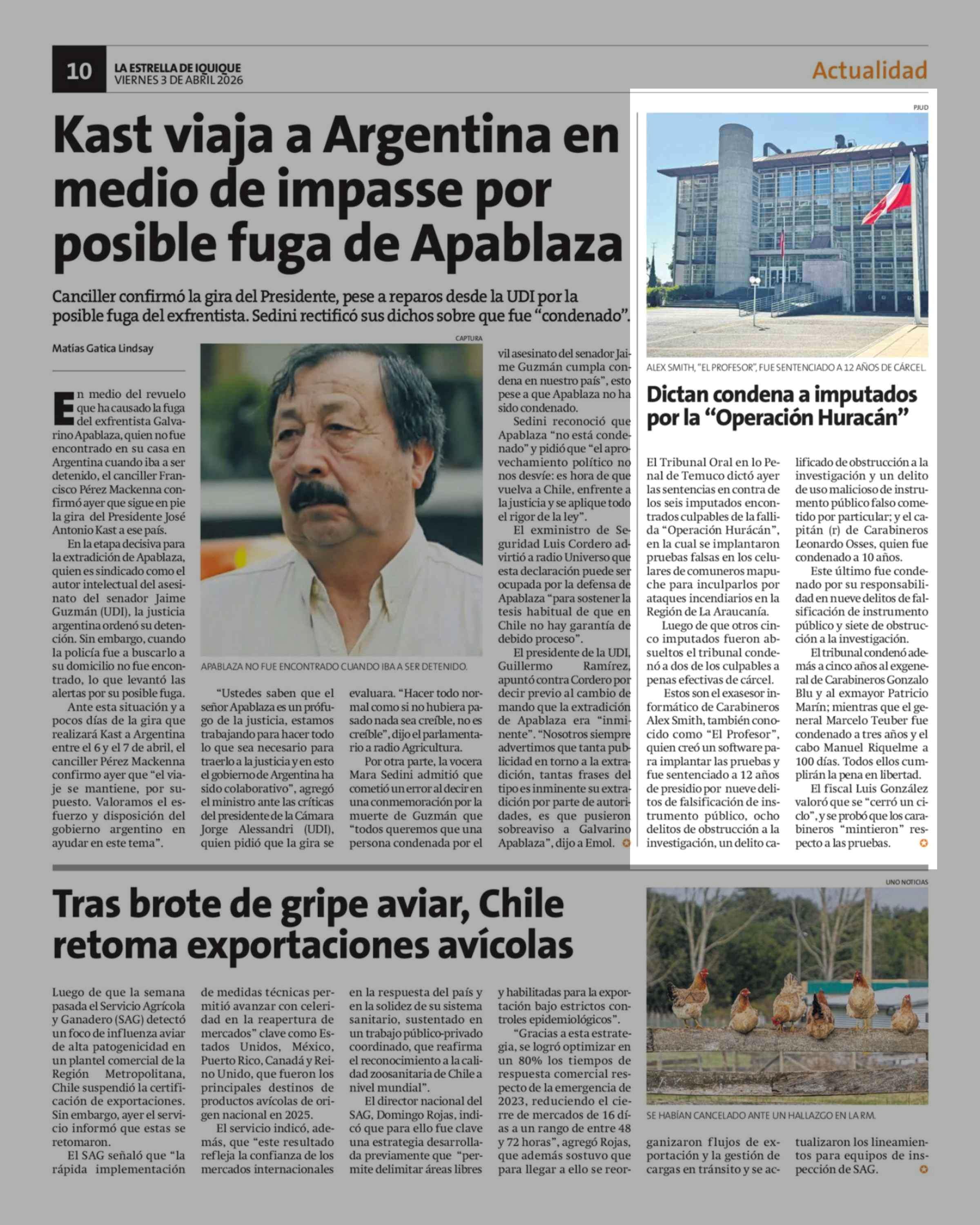 Dictan condena a imputados por la "Operación Huracán" 03-04-2026 La Estrella de Iquique |