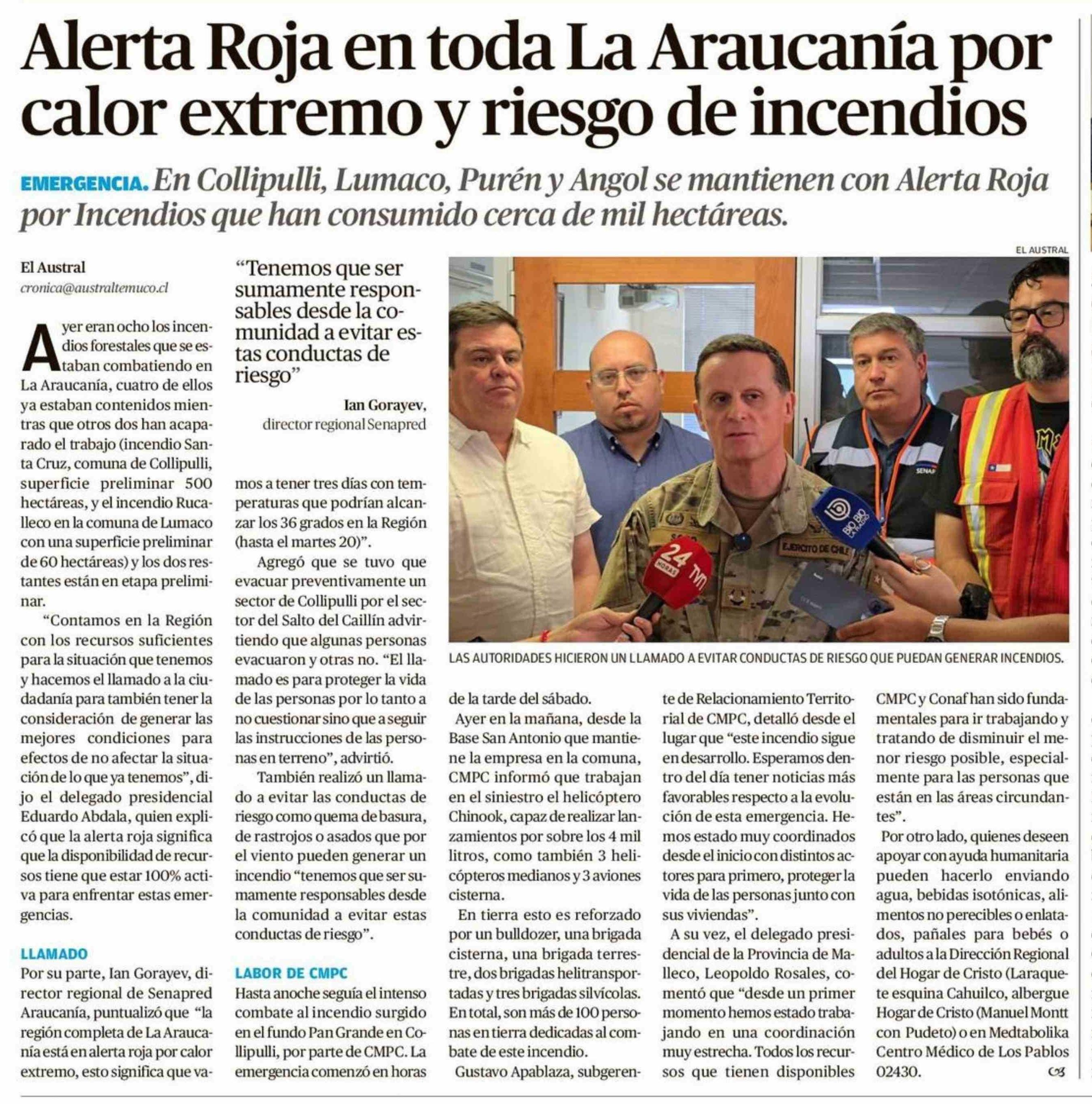 Título: Alerta Roja en toda La Araucanía por calor extremo y riesgo de incendios
