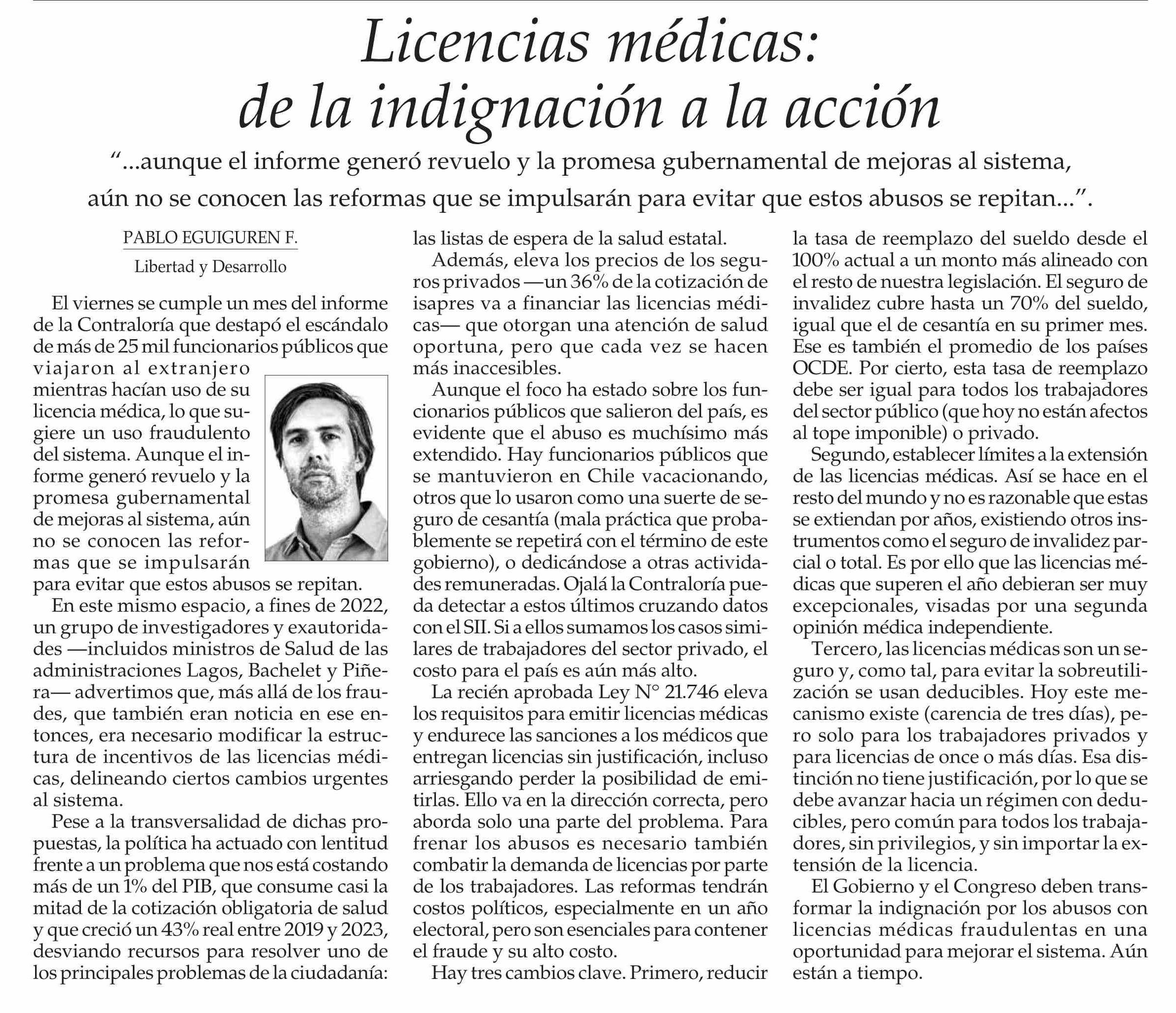 COLUMNAS DE OPINIÓN: Licencias médicas: de la indignación a la acción 18-06-2025 El Mercurio |