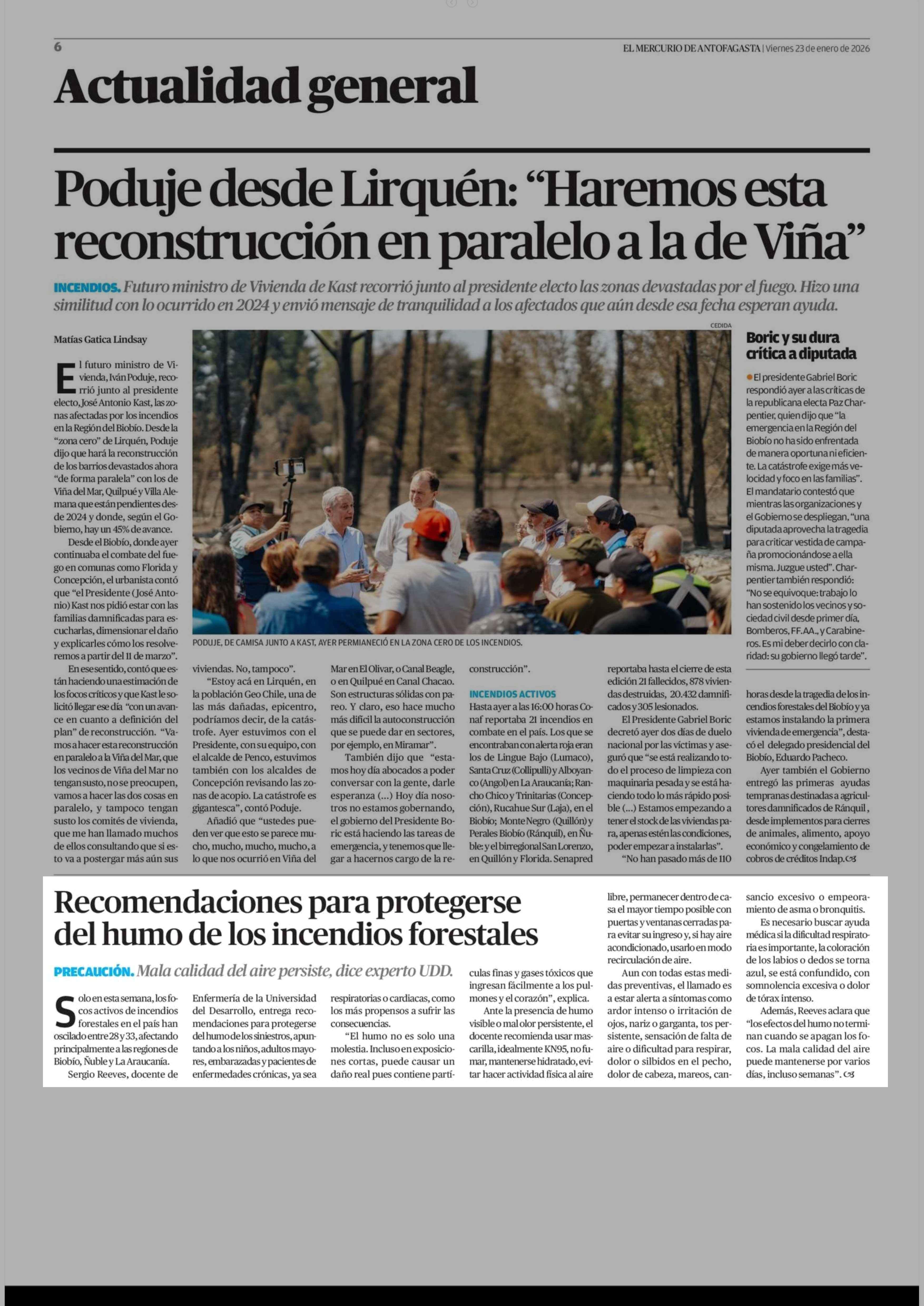 Recomendaciones para protegerse del humo de los incendios forestales 23-01-2026 El Mercurio de Antofagasta |