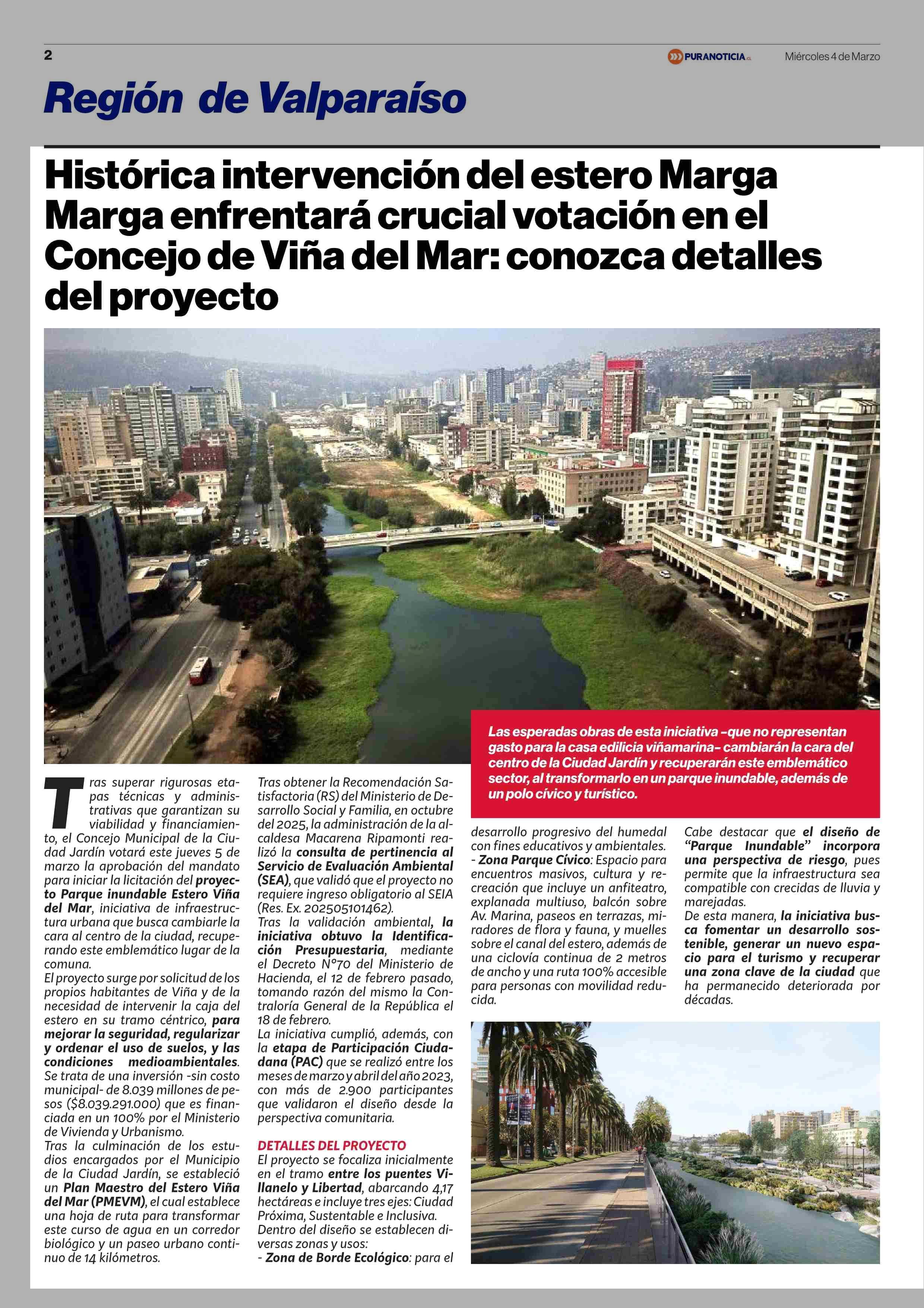 Histórica intervención del estero Marga Marga enfrentará crucial votación en el Concejo de Viña del Mar: conozca detalles del proyecto 04-03-2026 Puranoticia.cl |
