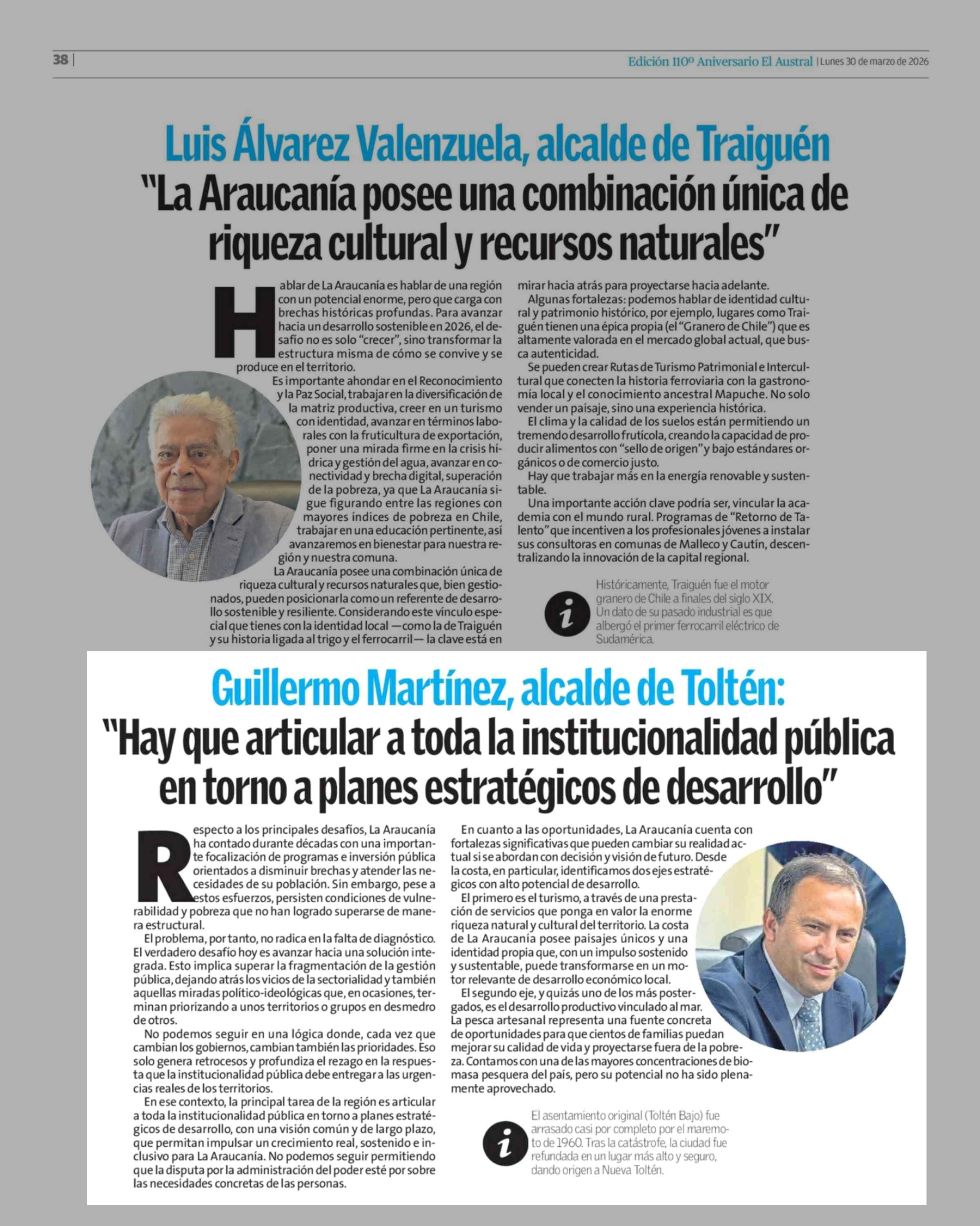 Fuente: El Austral de la Araucanía (El Austral de la Araucanía - Edición Especial) Página(s): 38