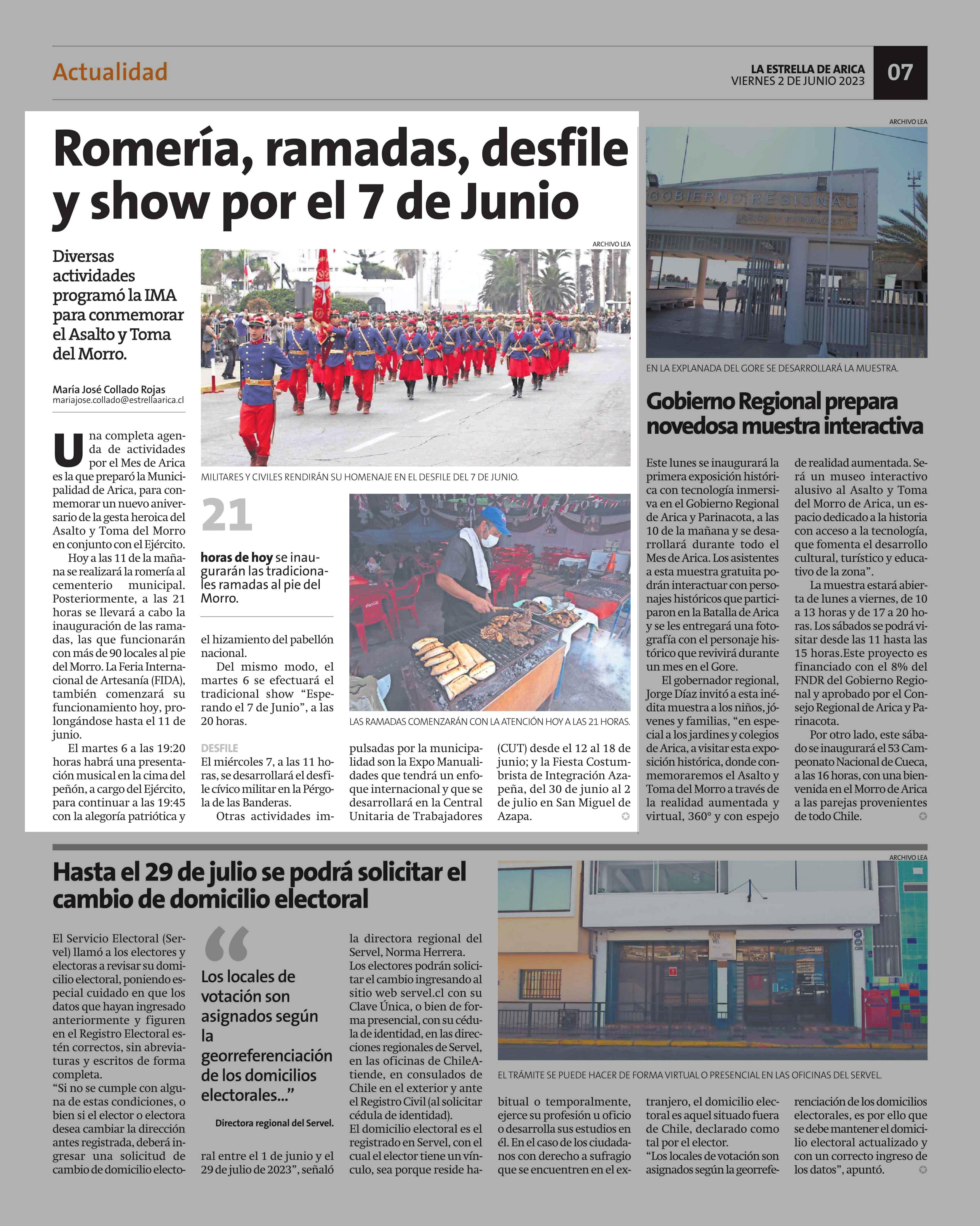 | Fecha: | 02-06-2023 | Sector: | Noticia general | Región: | Región de Arica y Parinacota |