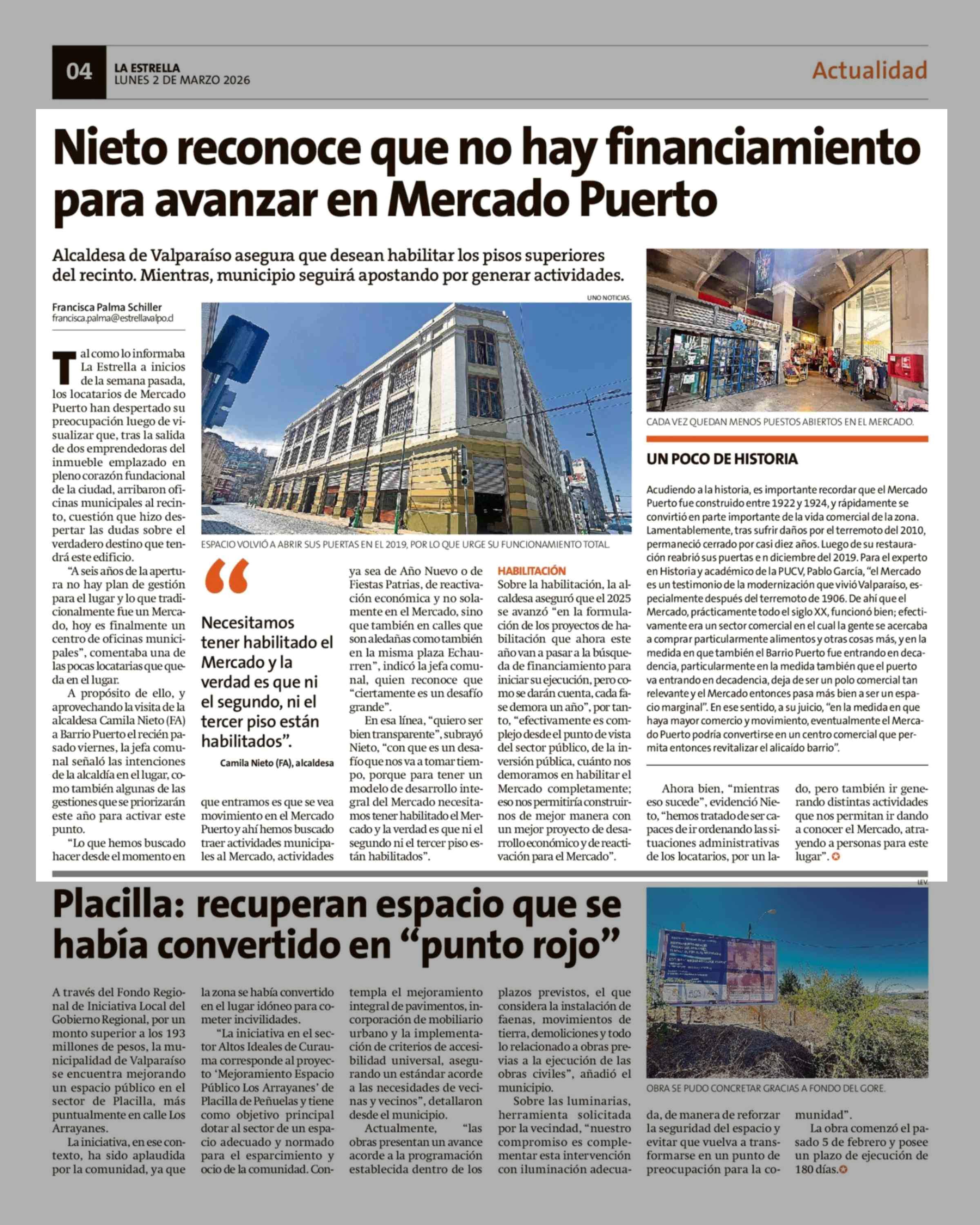 Nieto reconoce que no hay financiamiento para avanzar en Mercado Puerto 02-03-2026 La Estrella de Valparaíso |
