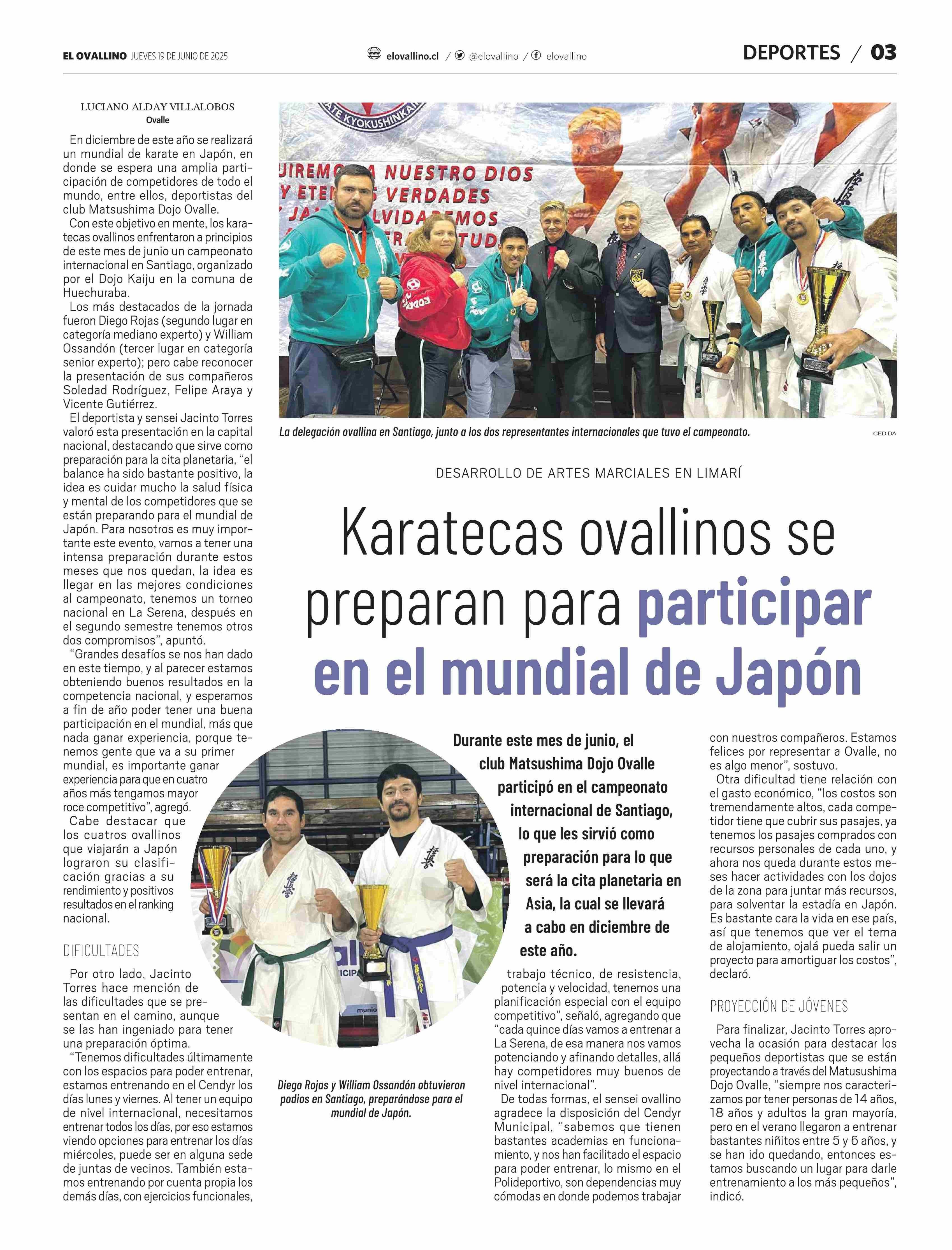 Karatecas ovallinos se preparan para participar en el mundial de Japón 19-06-2025 El Ovallino |