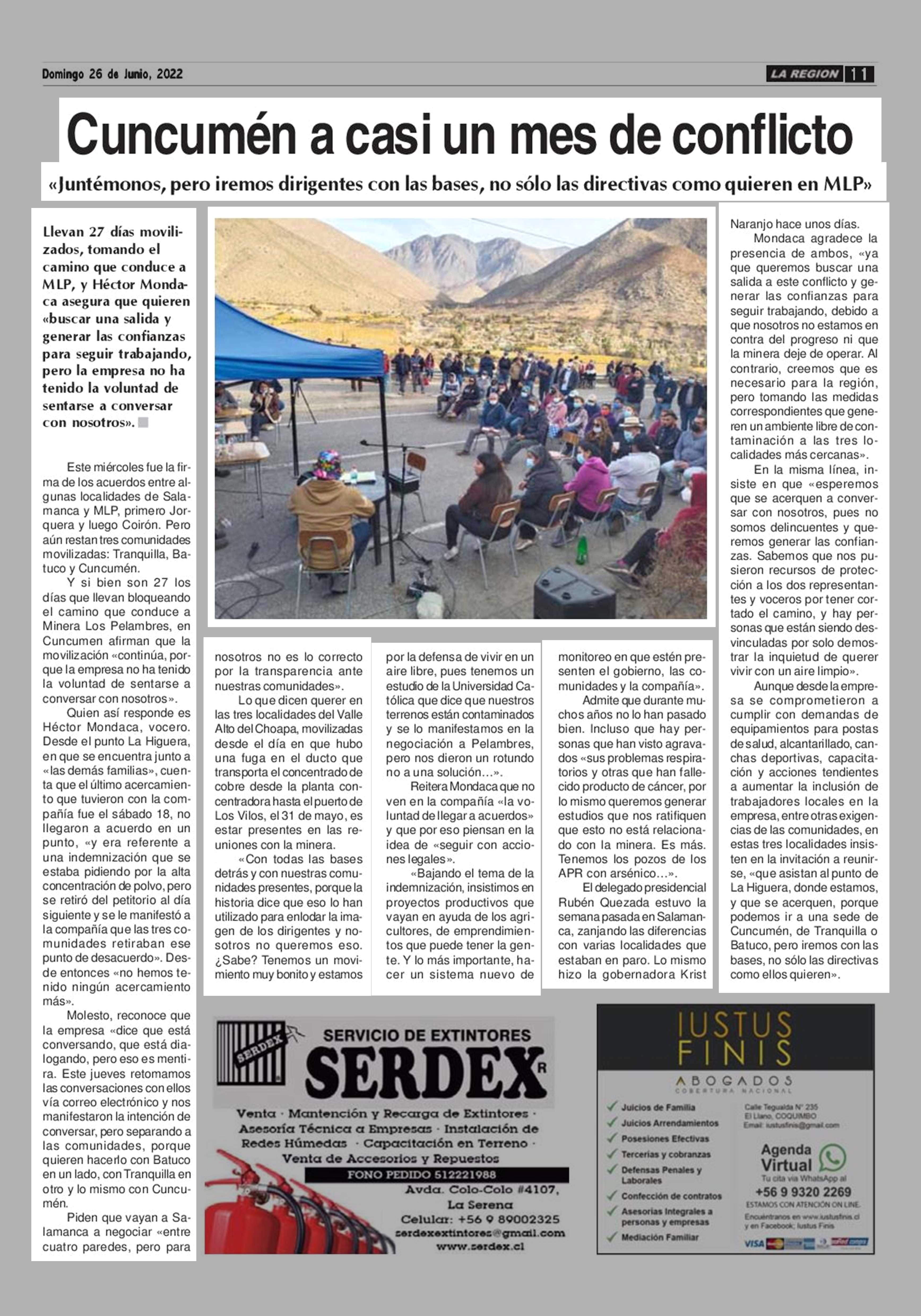 Cuncumén a casi un mes de conflicto 26-06-2022 Diario la Región |