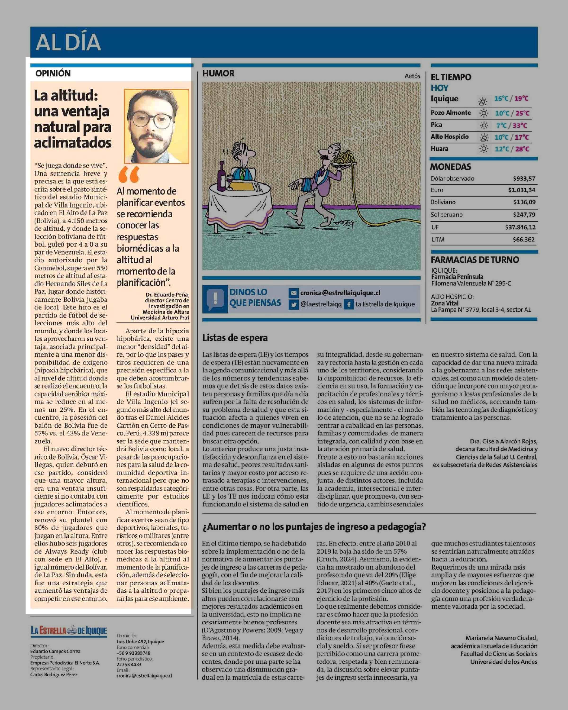 La altitud: una ventaja natural para aclimatados 13-09-2024 La Estrella de Iquique |