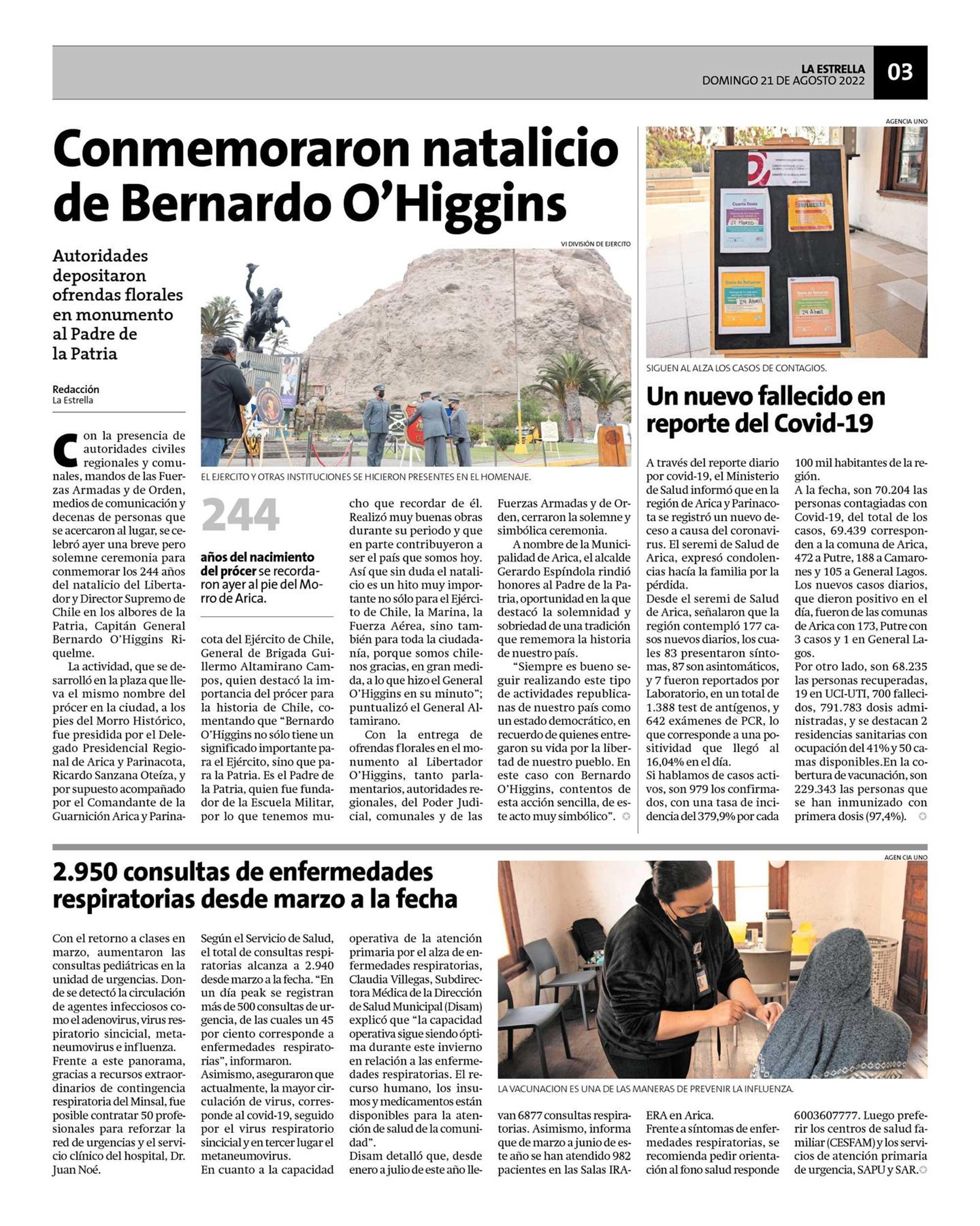 Fecha: 21-08-2022 Sector: Actualidad Región: Región de Arica y Parinacota
