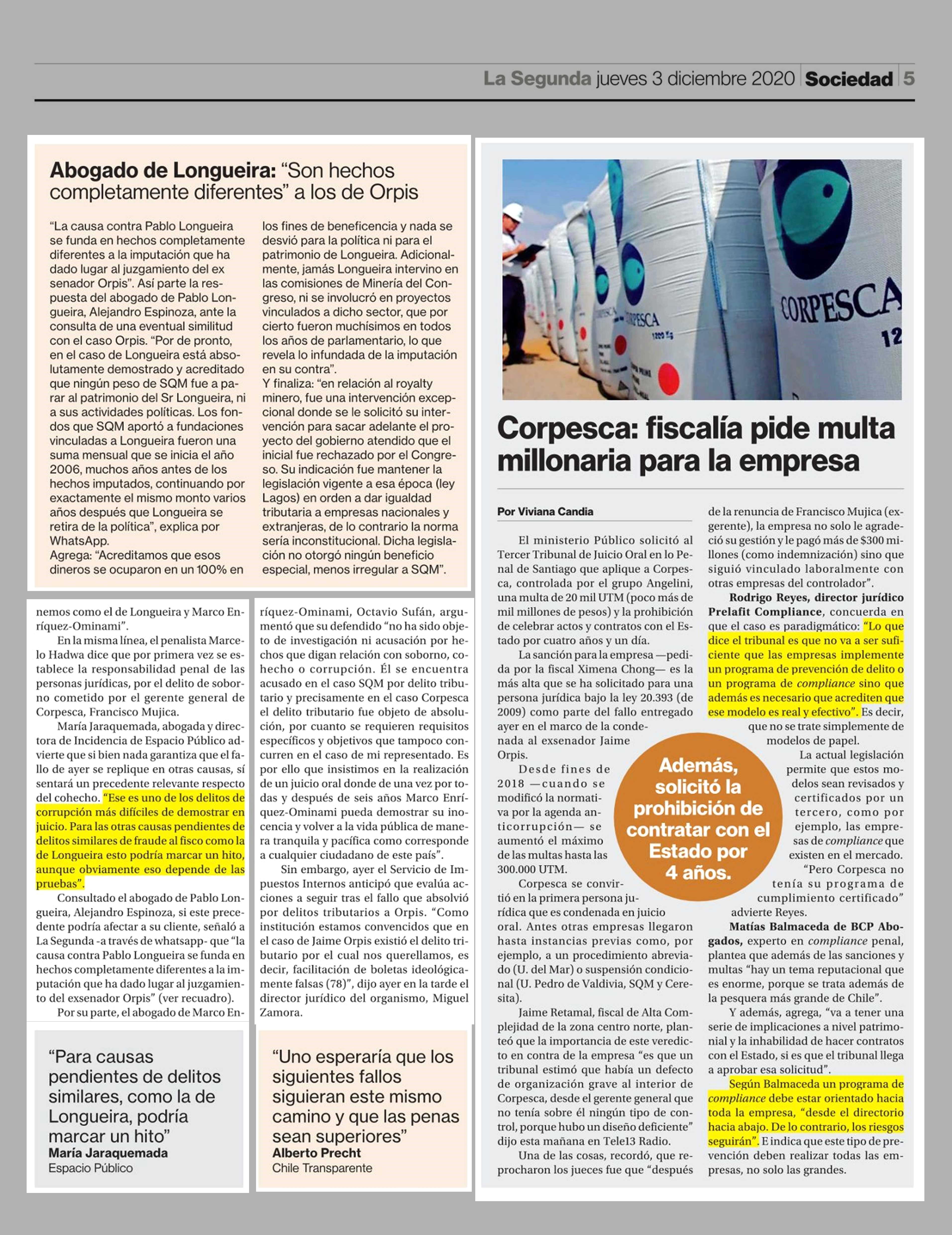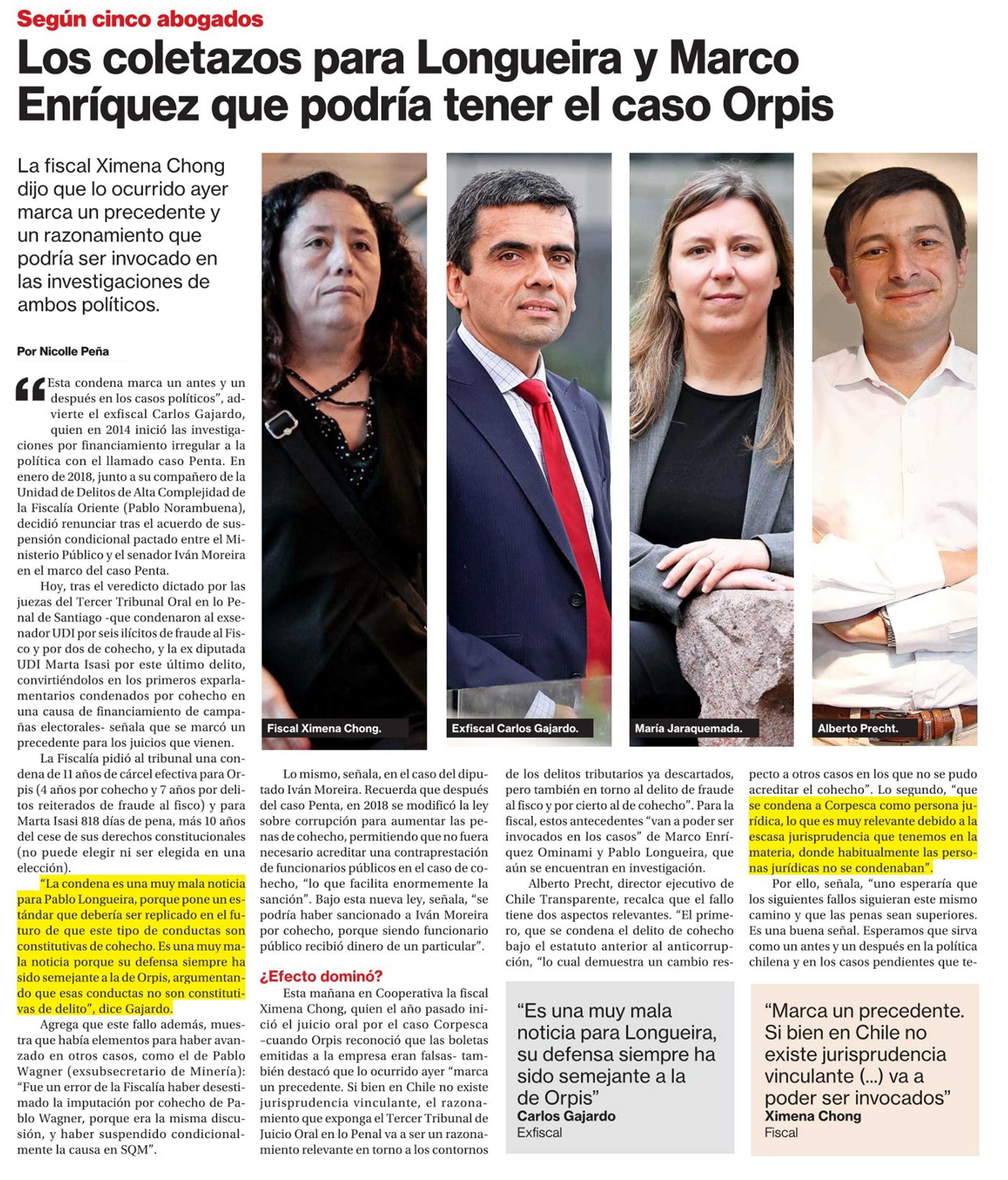 Los coletazos para Longueira y Marco Enríquez que podría tener el caso Orpis 03-12-2020 La Segunda |