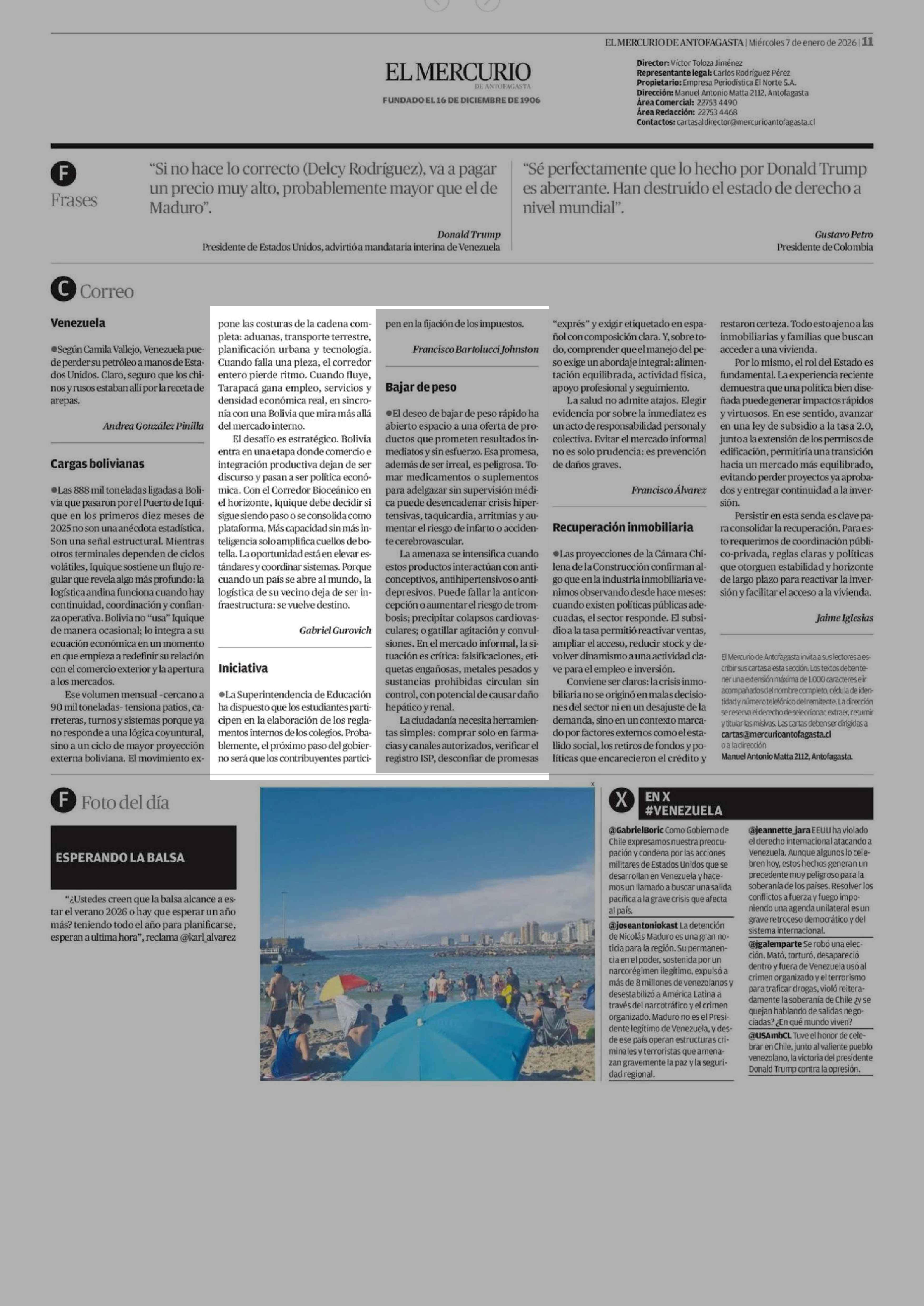 CARTAS: Iniciativa 07-01-2026 El Mercurio de Antofagasta |