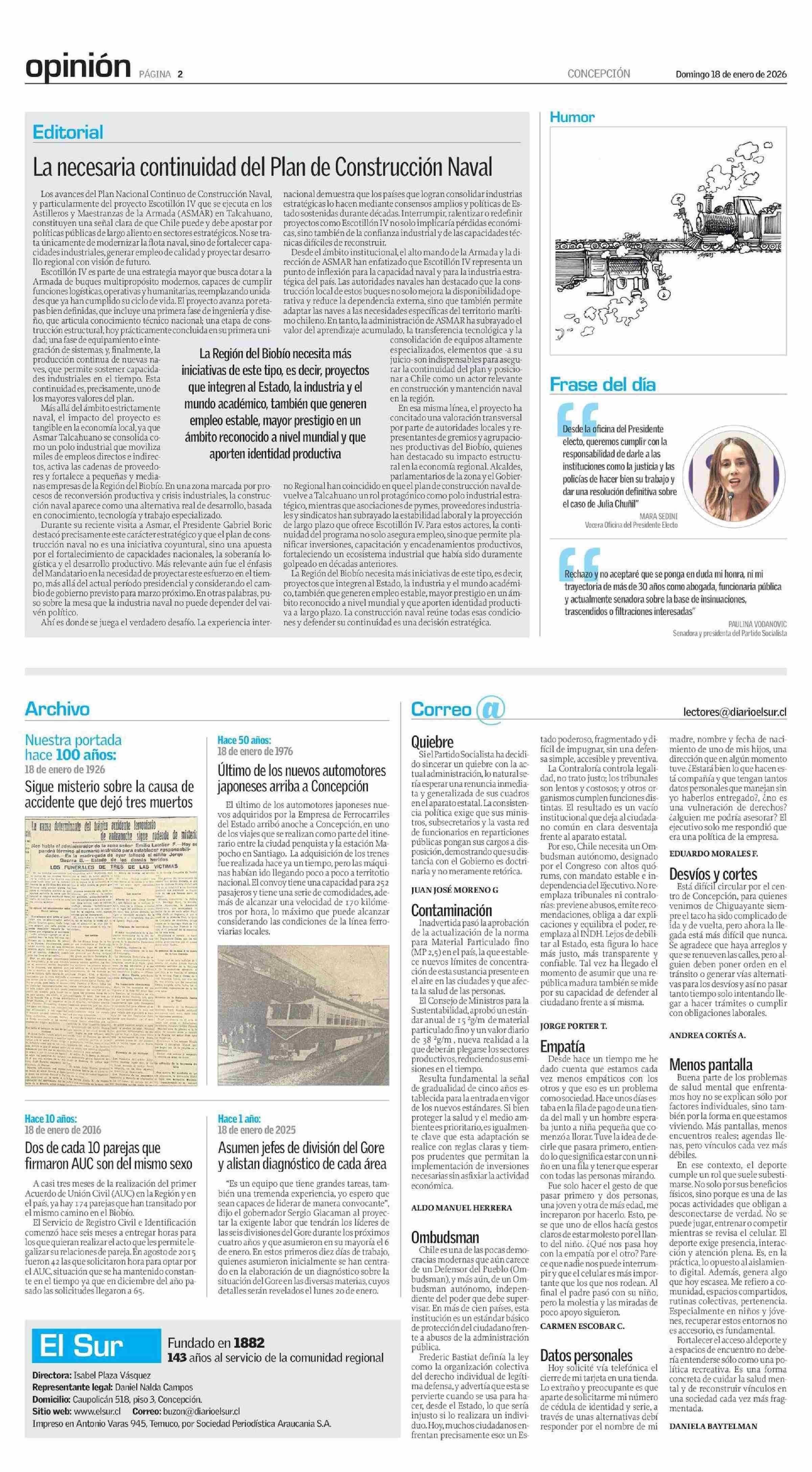 Fecha: 18-01-2026 Sector: Editorial Región: Región del Bío-Bío