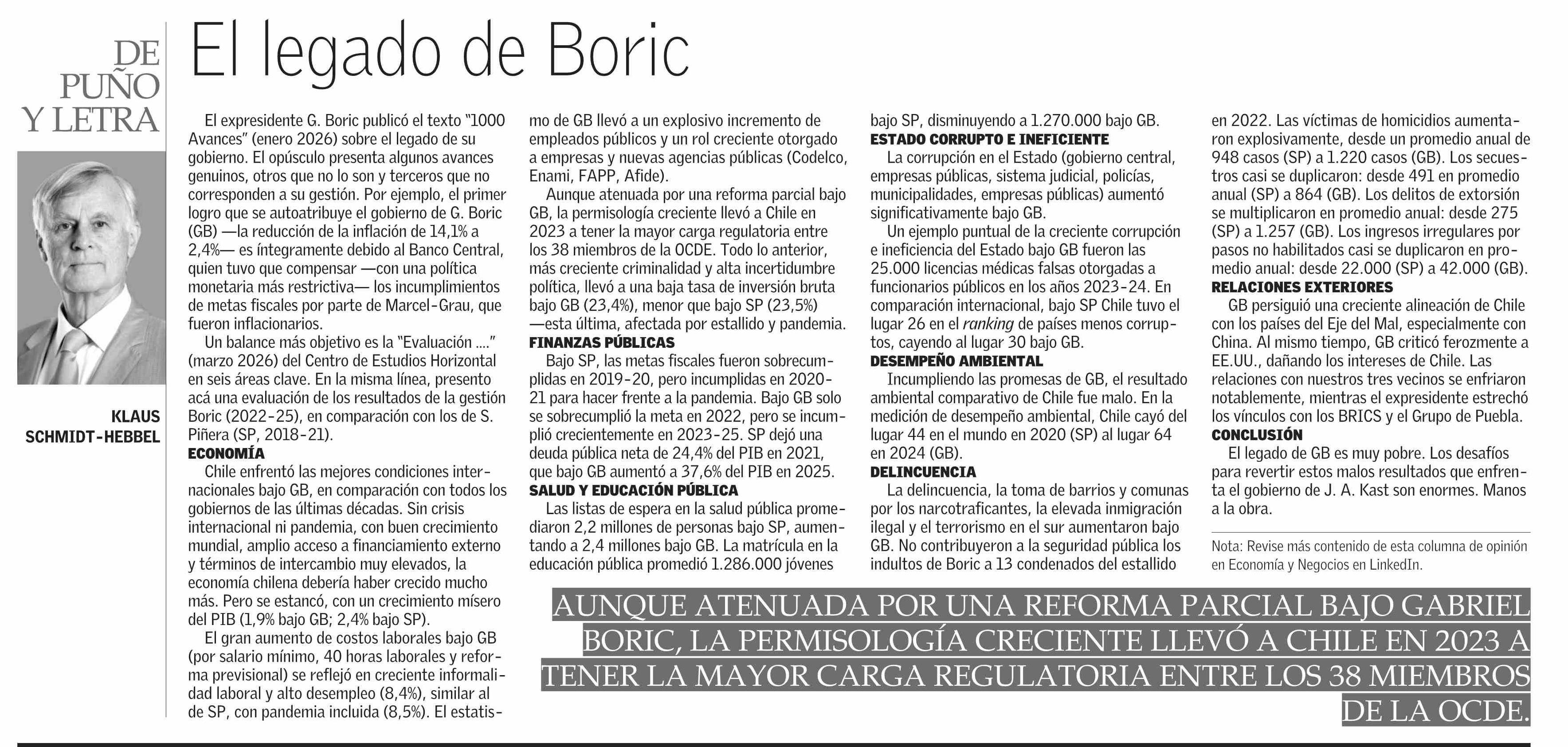 Título: Columnas de Opinión: El legado de Boric