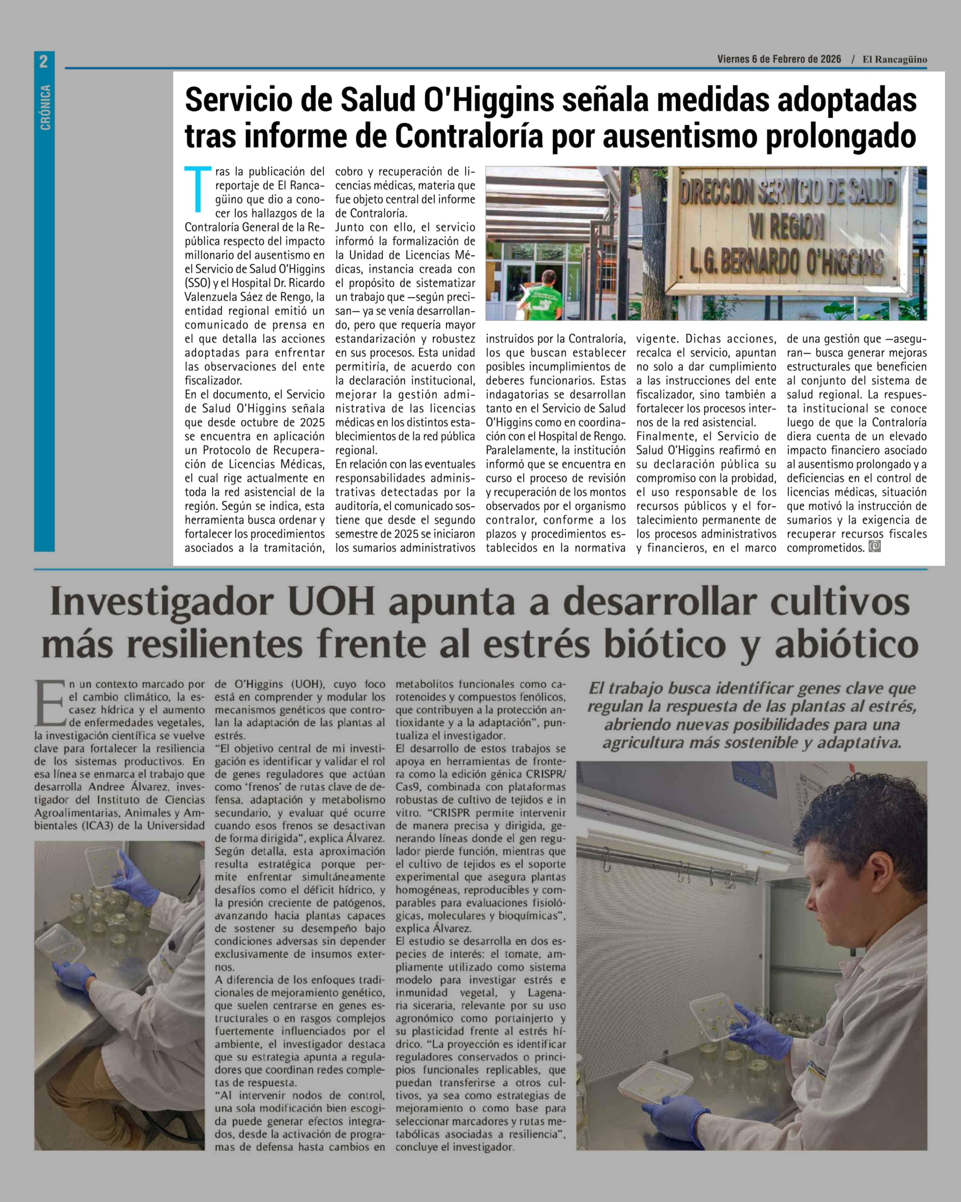 | Fecha: | 06-02-2026 | Sector: | Noticia general | Región: | Región del Libertador General Bernardo O'Higgins |