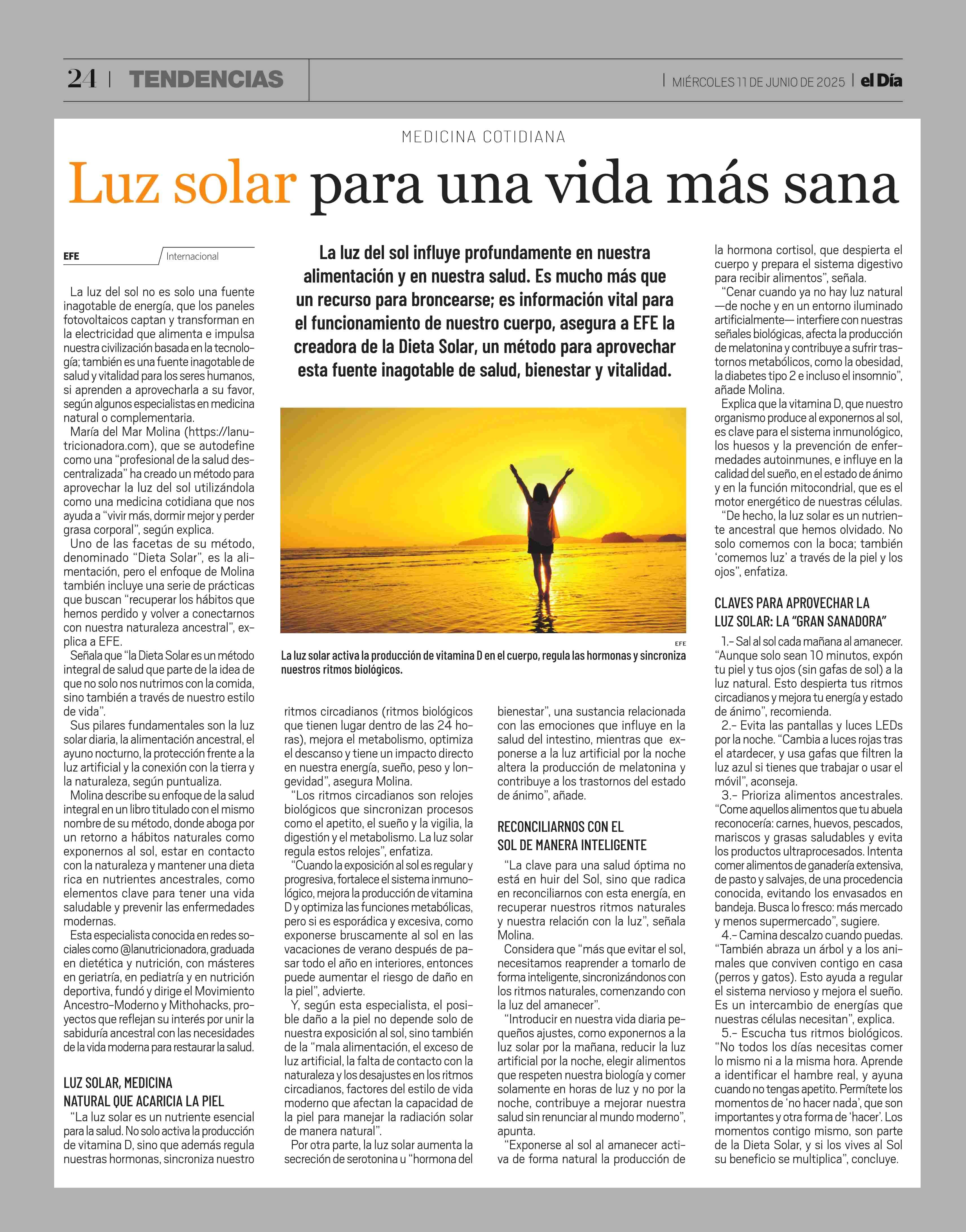 Luz solar para una vida más sana 11-06-2025 El Día |
