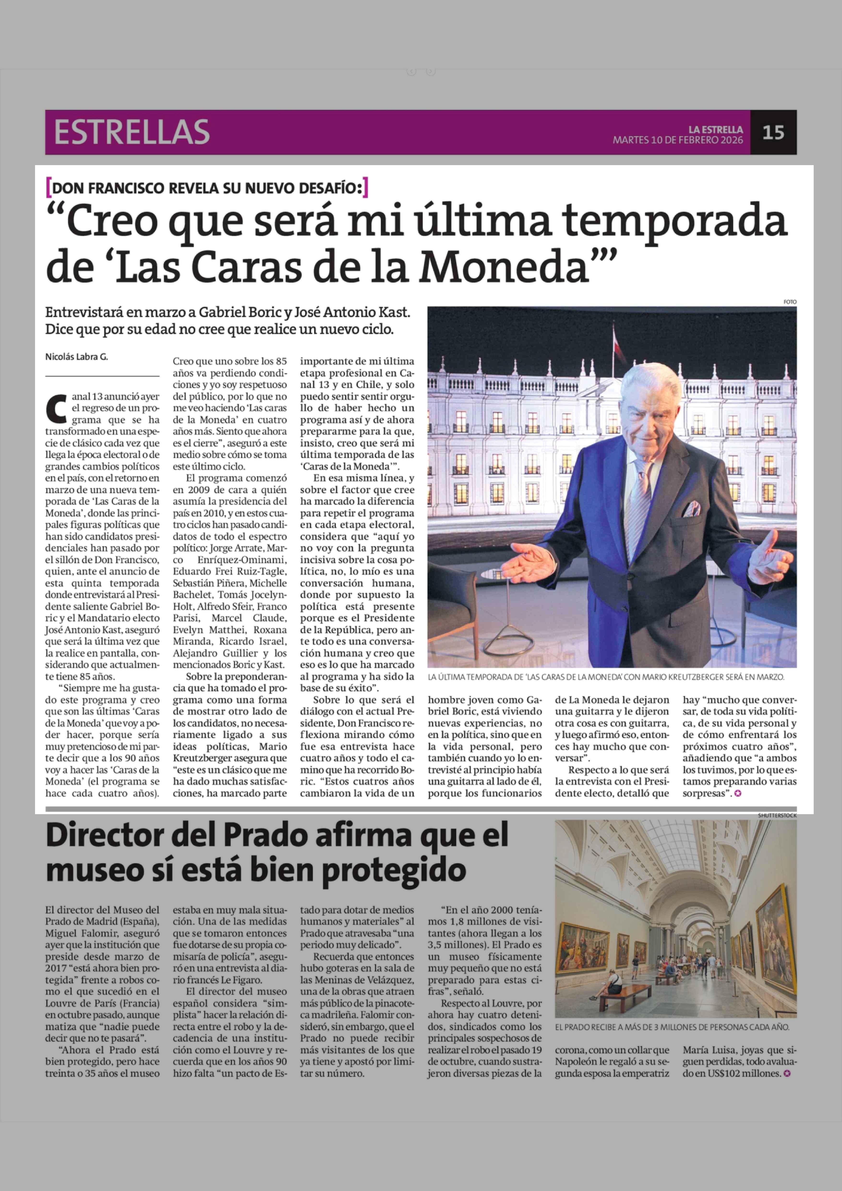 "Creo que será mi última temporada de 'Las Caras de la Moneda"" 10-02-2026 La Estrella de Concepción |