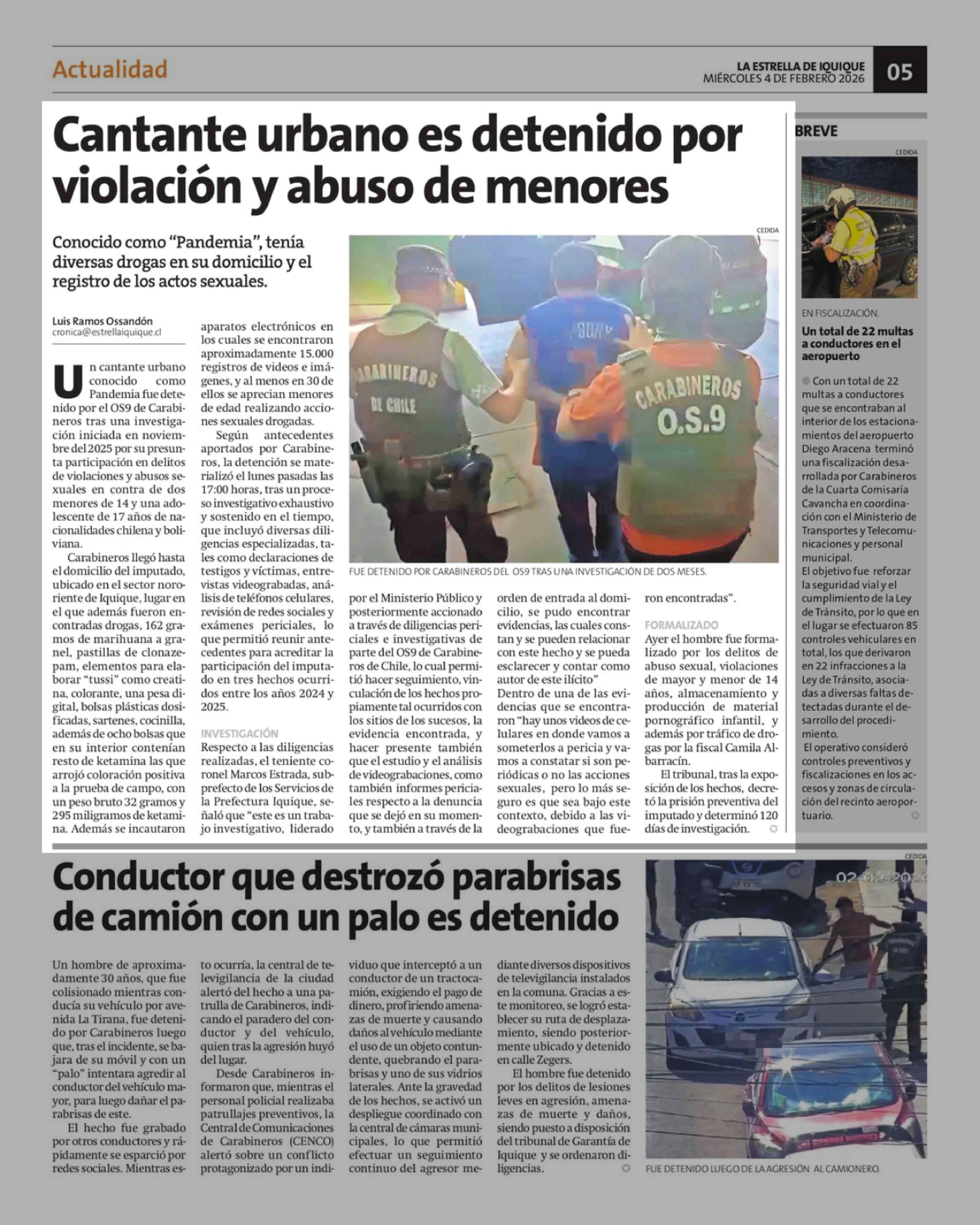 Cantante urbano es detenido por violación y abuso de menores 04-02-2026 La Estrella de Iquique |