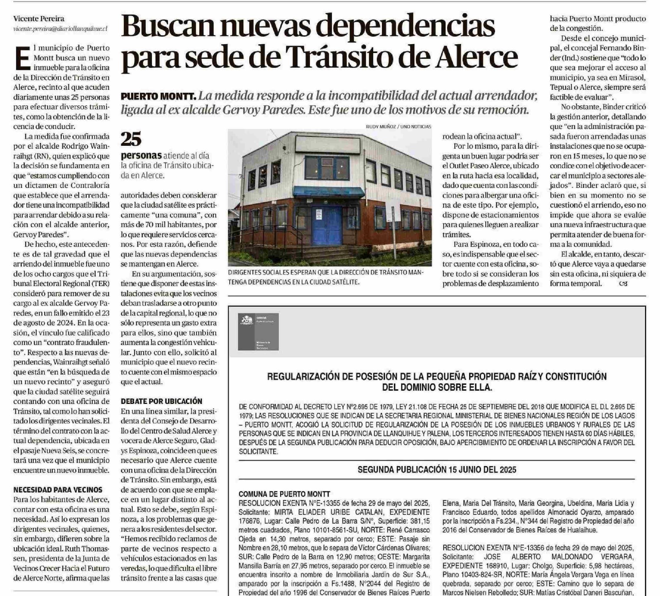 Buscan nuevas dependencias para sede de Tránsito de Alerce 15-06-2025 El Llanquihue |