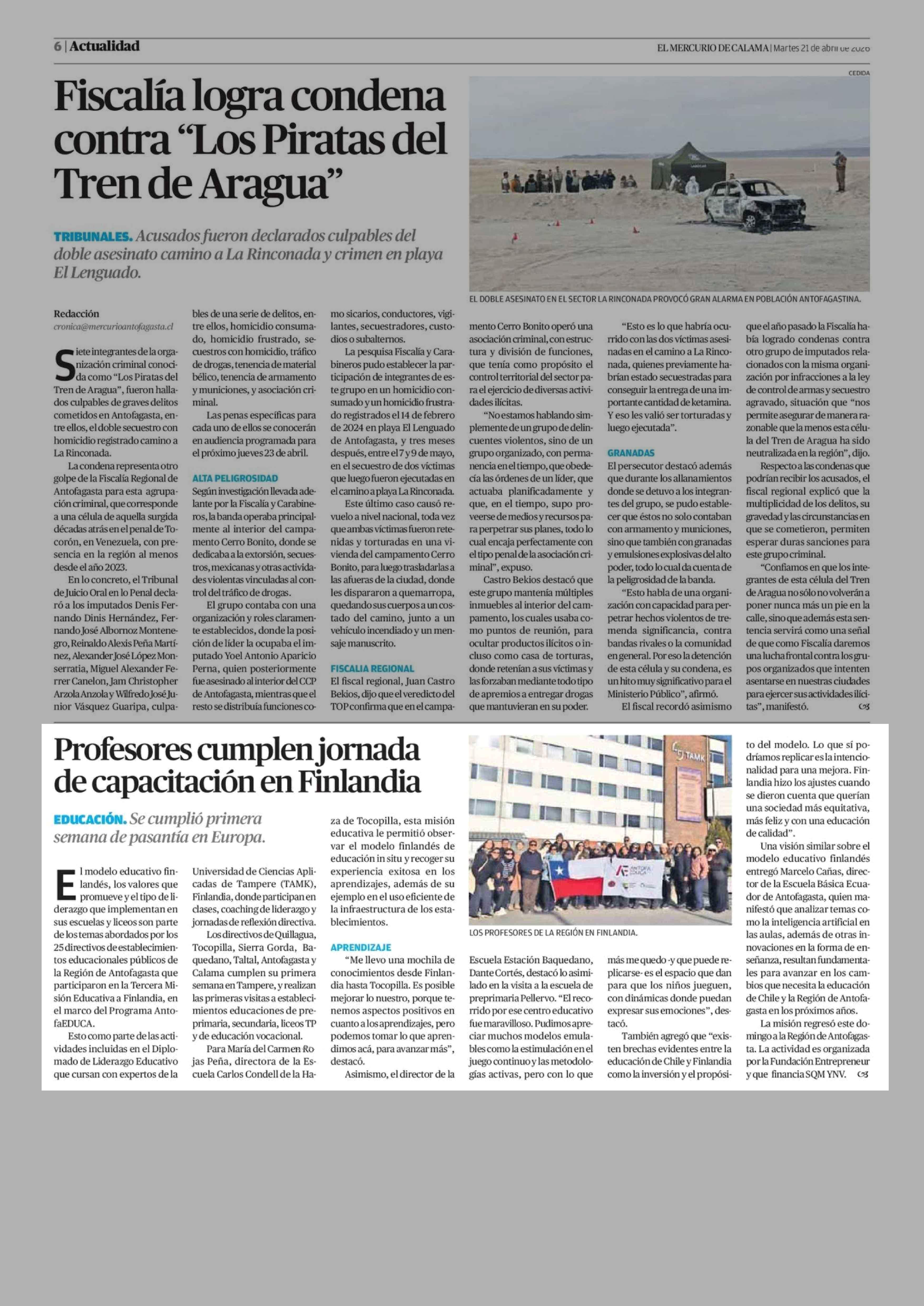 Profesores cumplen jornada de capacitación en Finlandia 21-04-2026 El Mercurio de Calama |