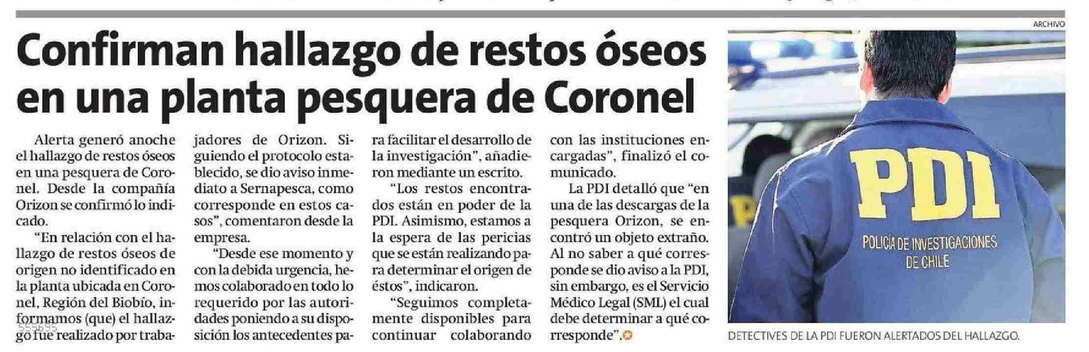 Confirman hallazgo de restos óseos en una planta pesquera de Coronel 06-05-2025 La Estrella de Concepción |