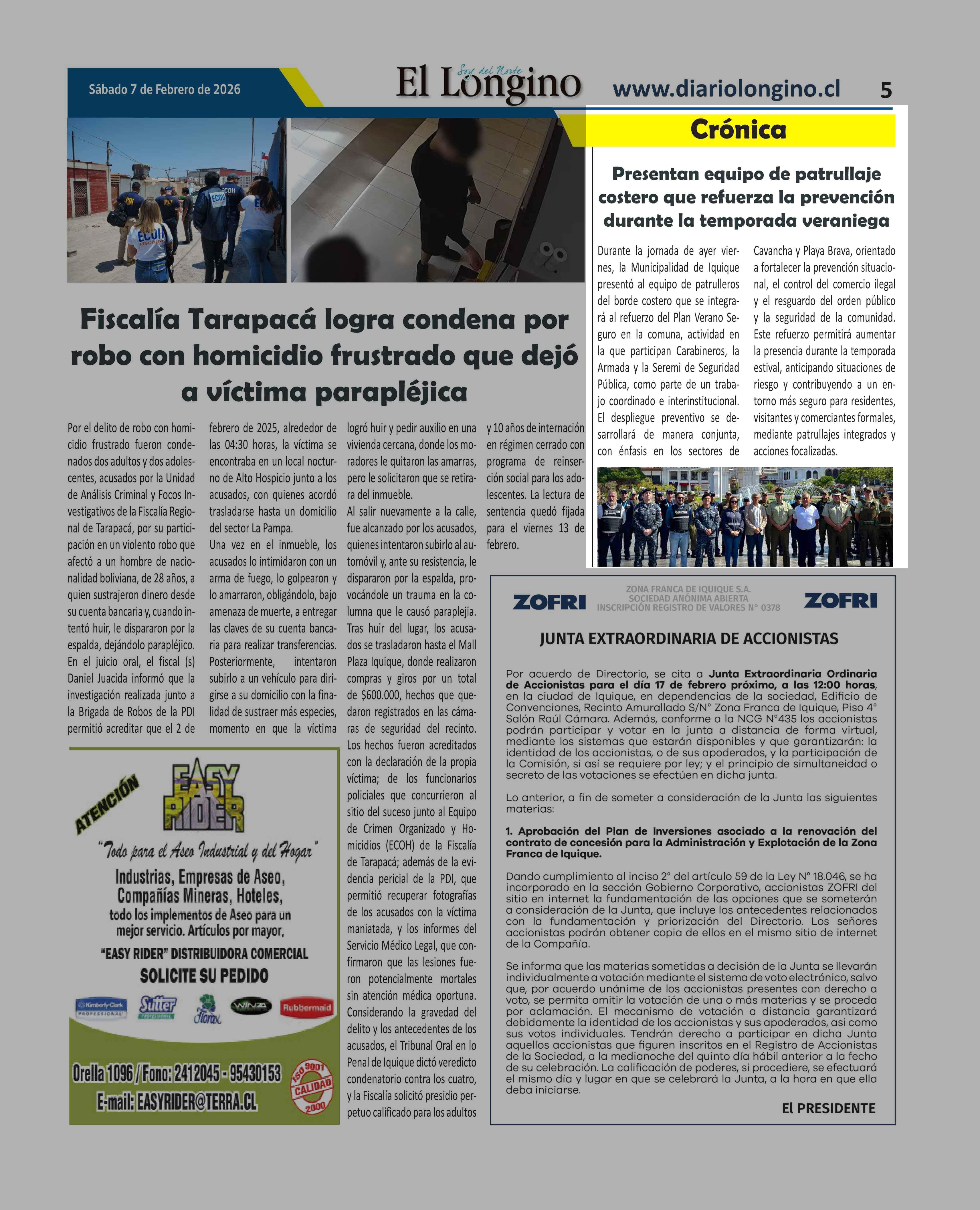 | Fecha: | 07-02-2026 | Sector: | Noticia general | Región: | Región de Tarapacá |