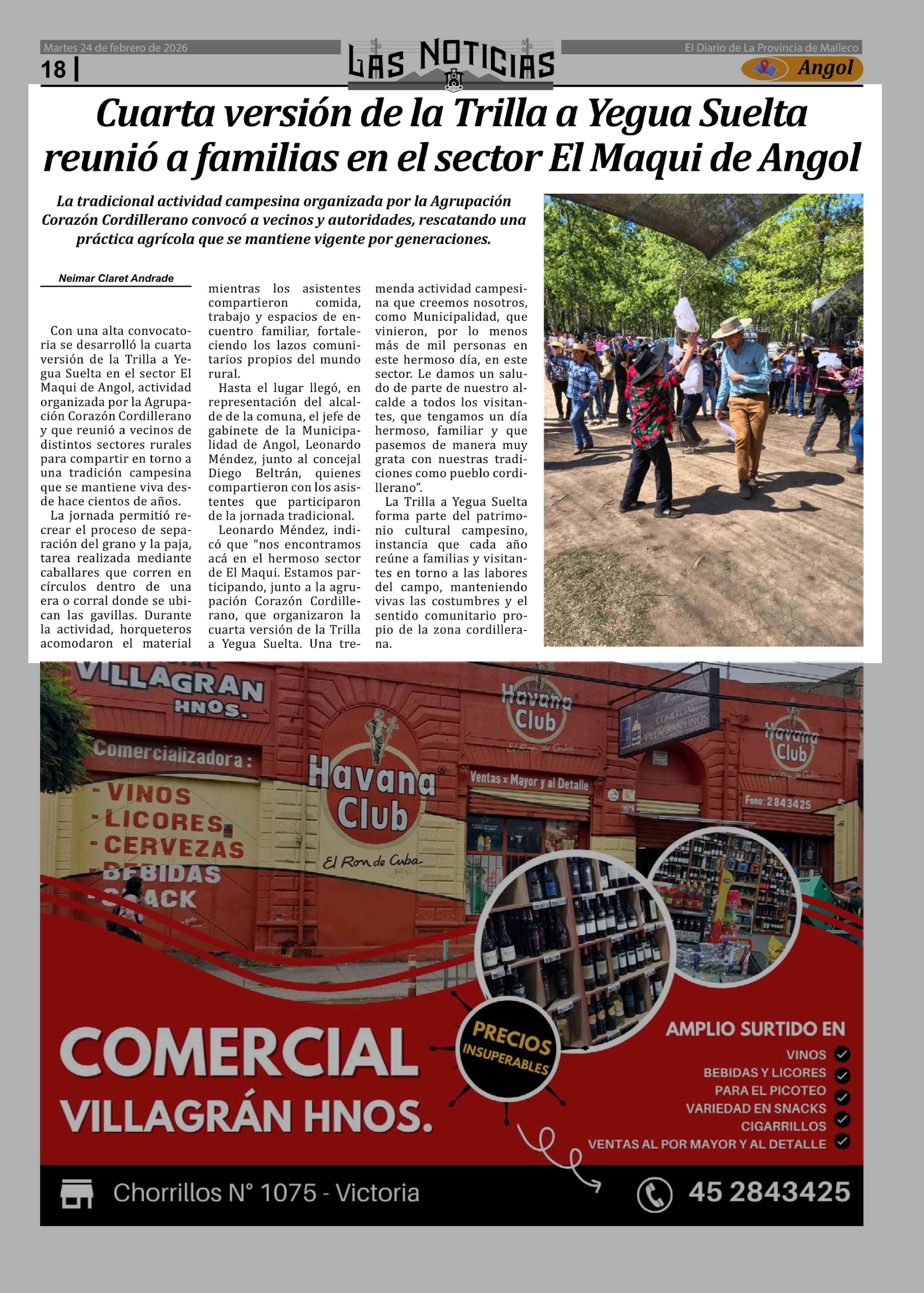 Cuarta versión de la Trilla a Yegua Suelta reunió a familias en el sector El Maqui de Angol 24-02-2026 Las Noticias |