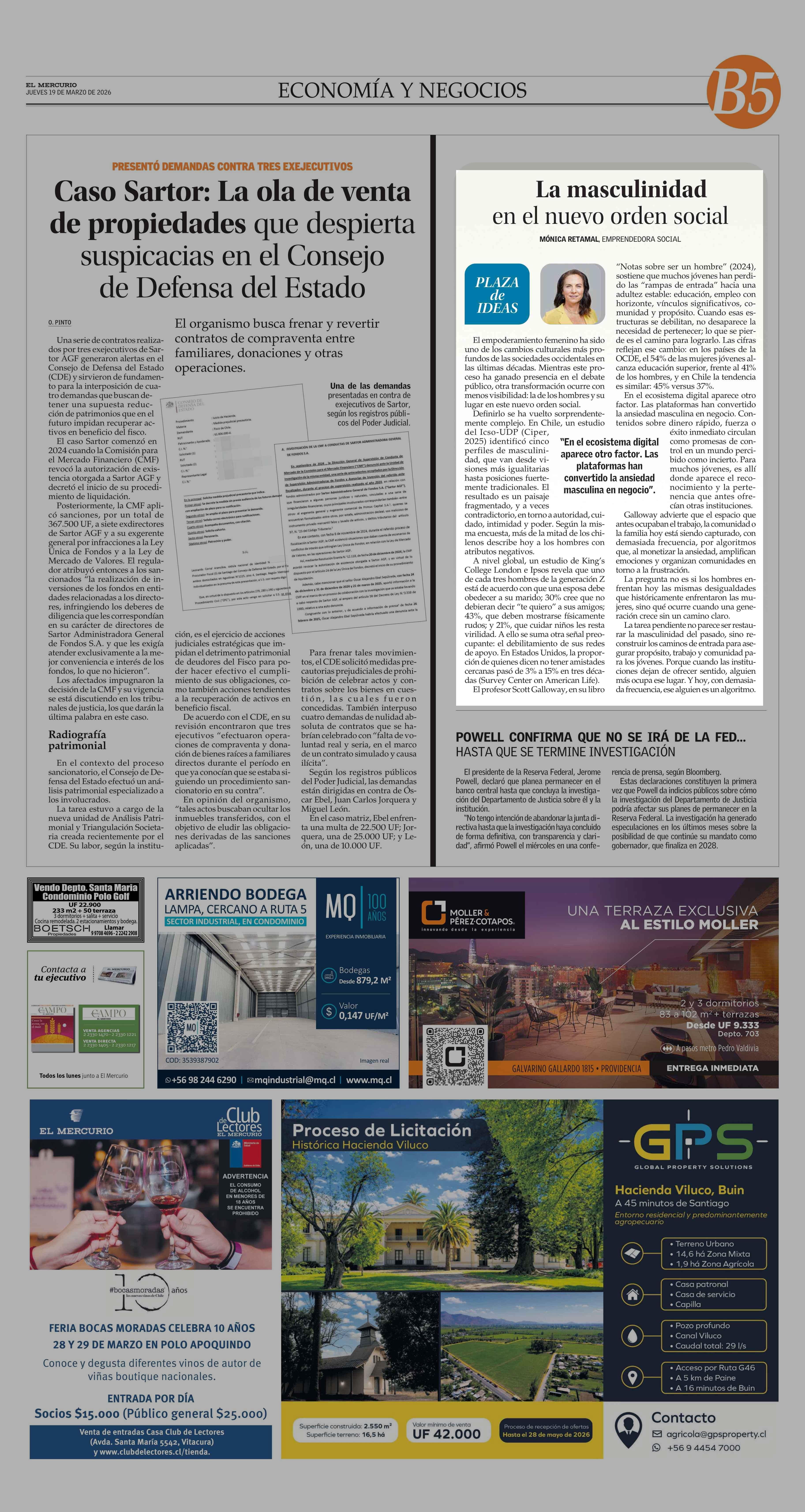 Columnas de Opinión: La masculinidad en el nuevo orden social 19-03-2026 El Mercurio |