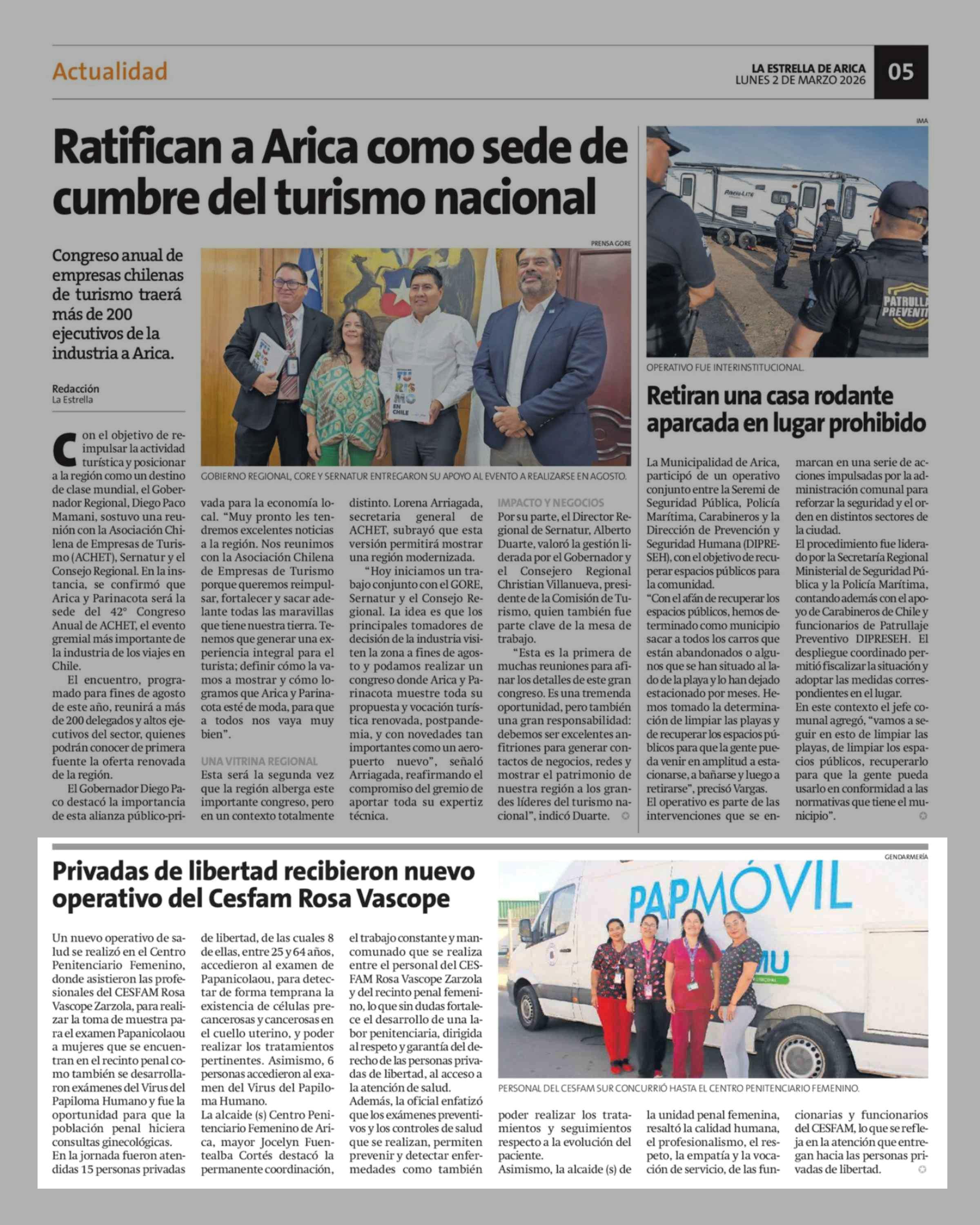 | Fecha: | 02-03-2026 | Sector: | Noticia general | Región: | Región de Arica y Parinacota |