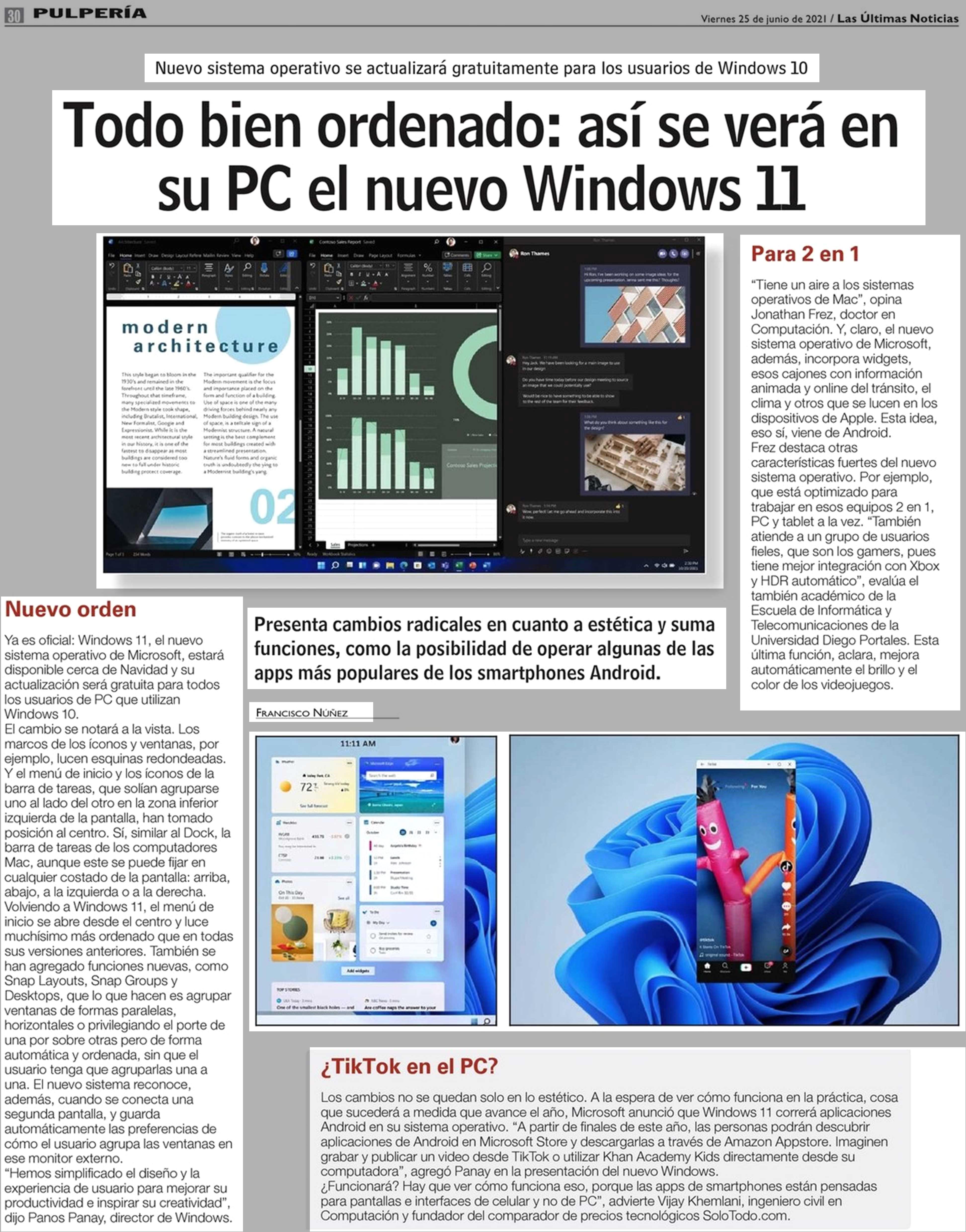 Todo bien ordenado: así se verá en su PC el nuevo Windows 11 25-06-2021 Las Últimas Noticias  |