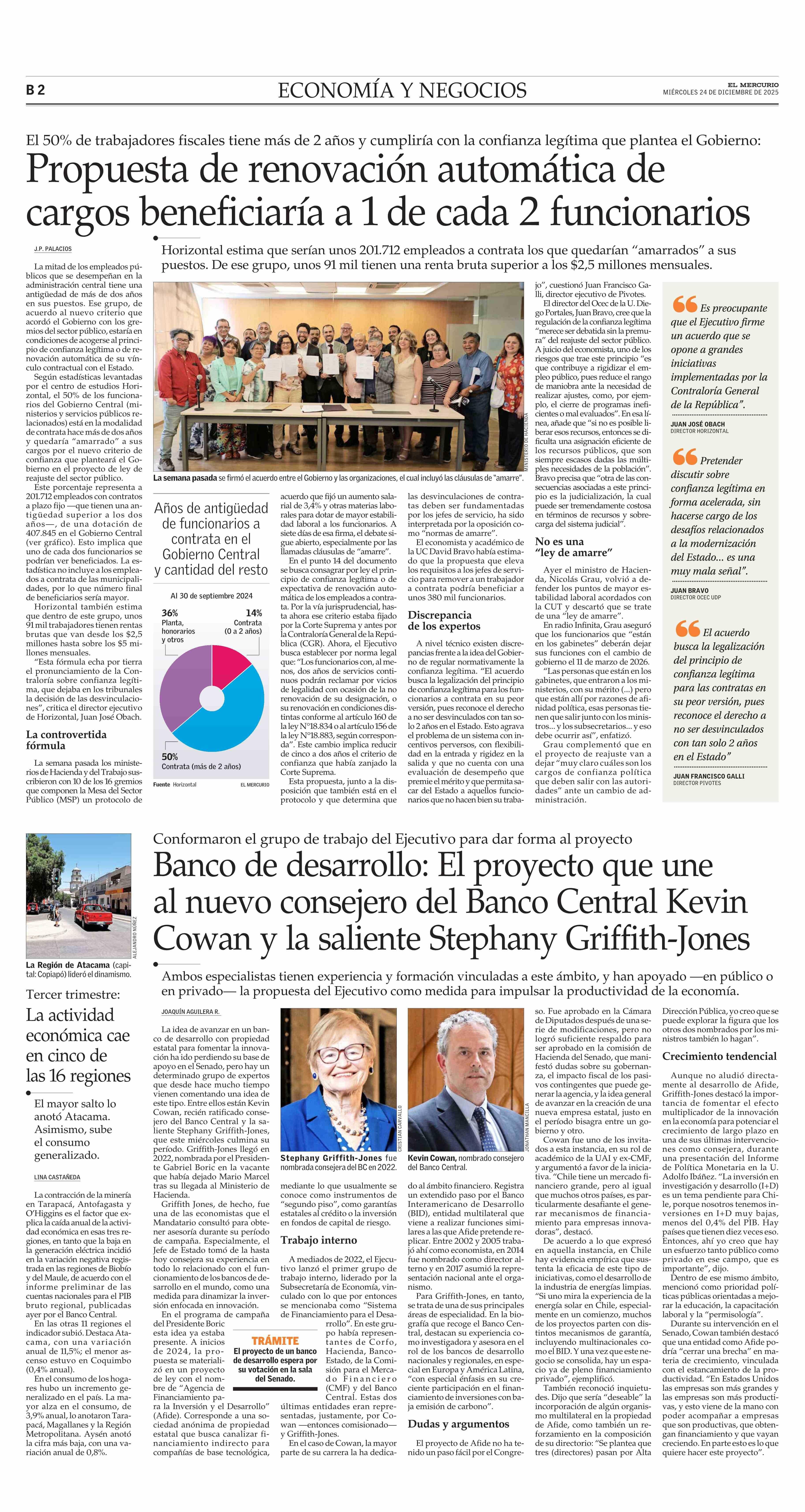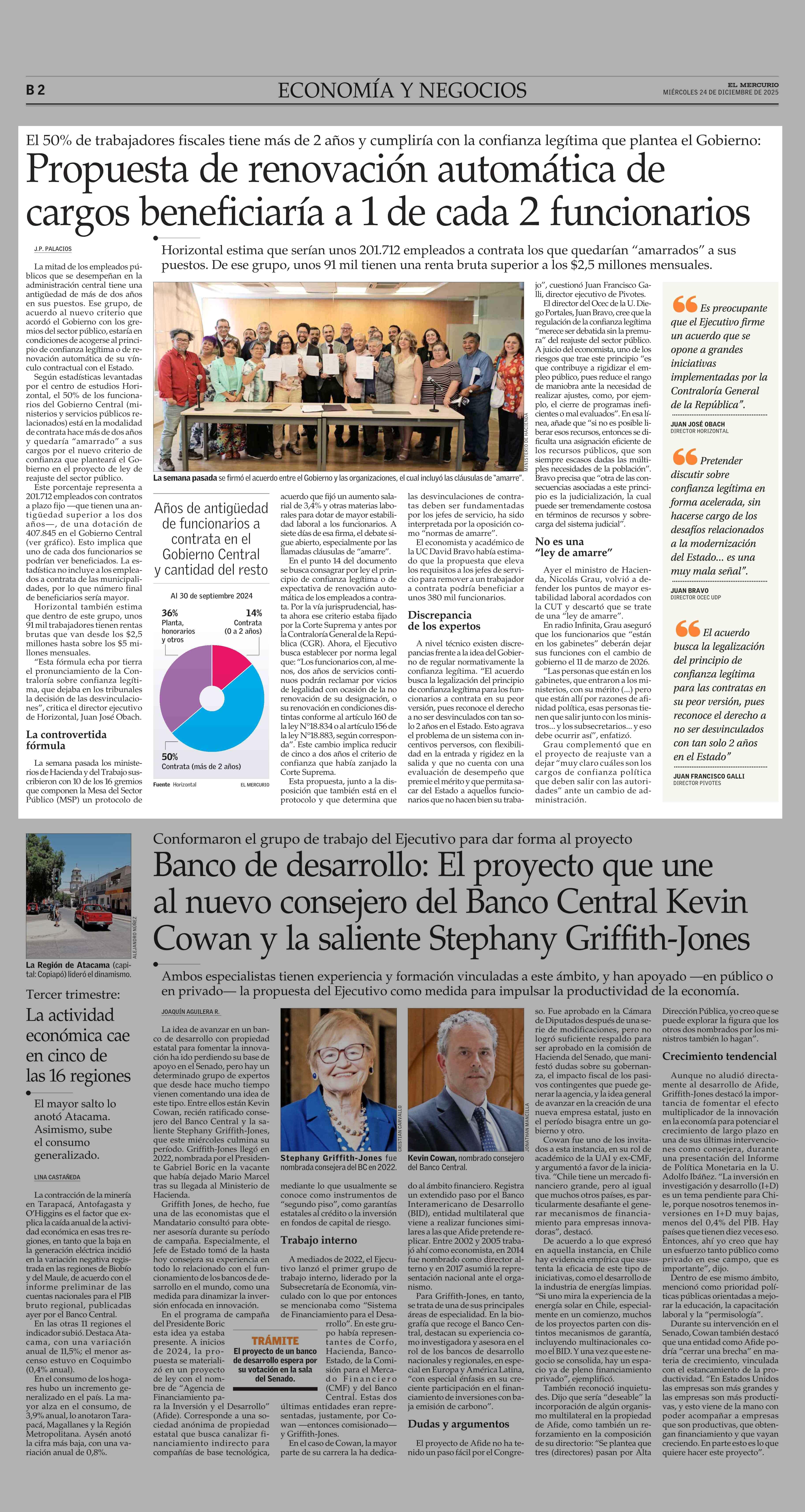 Propuesta de renovación automática de cargos beneficiaría a 1 de cada 2 funcionarios 24-12-2025 El Mercurio |