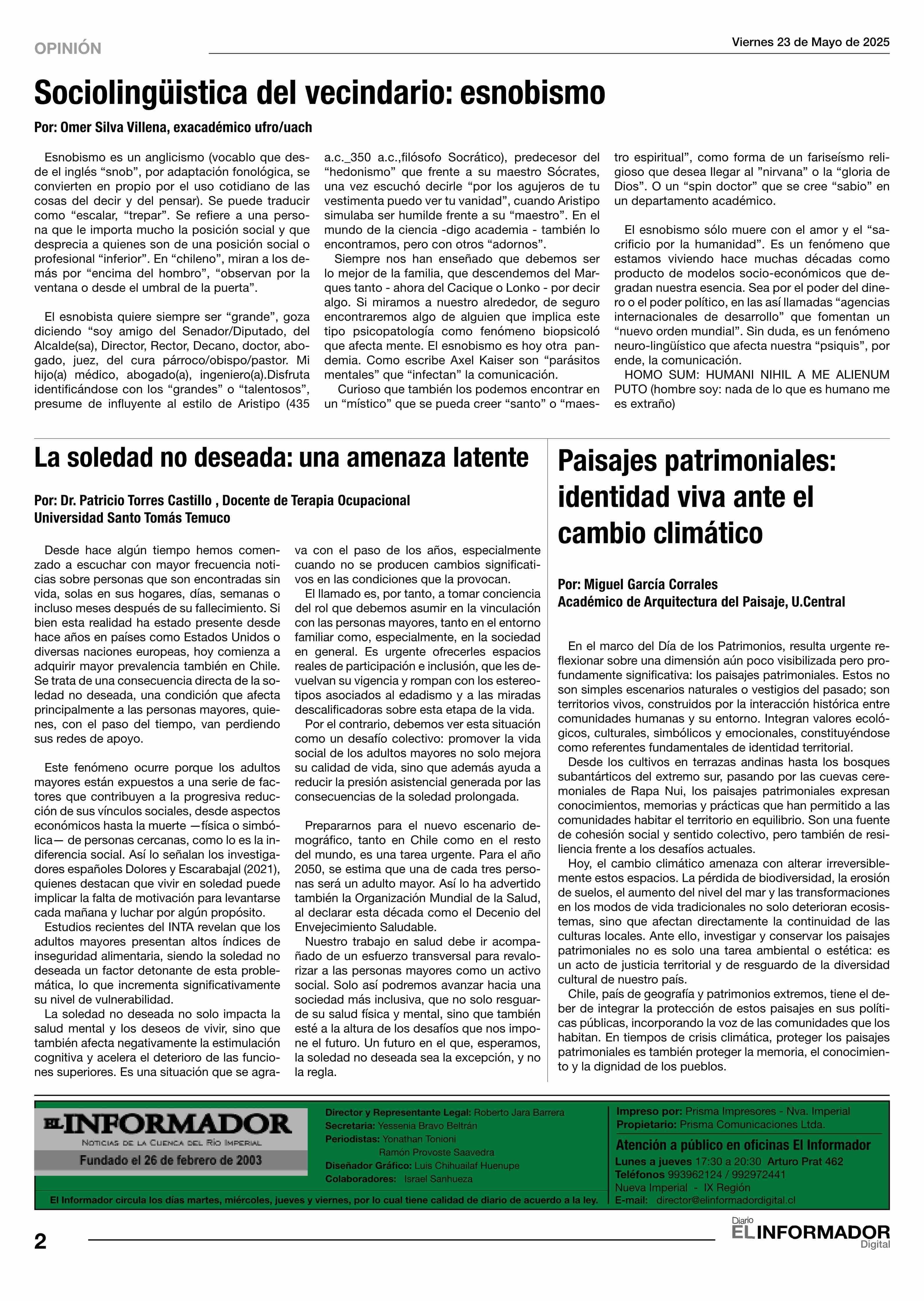 COLUMNAS DE OPINIÓN: esnobismo 23-05-2025 El Informador |