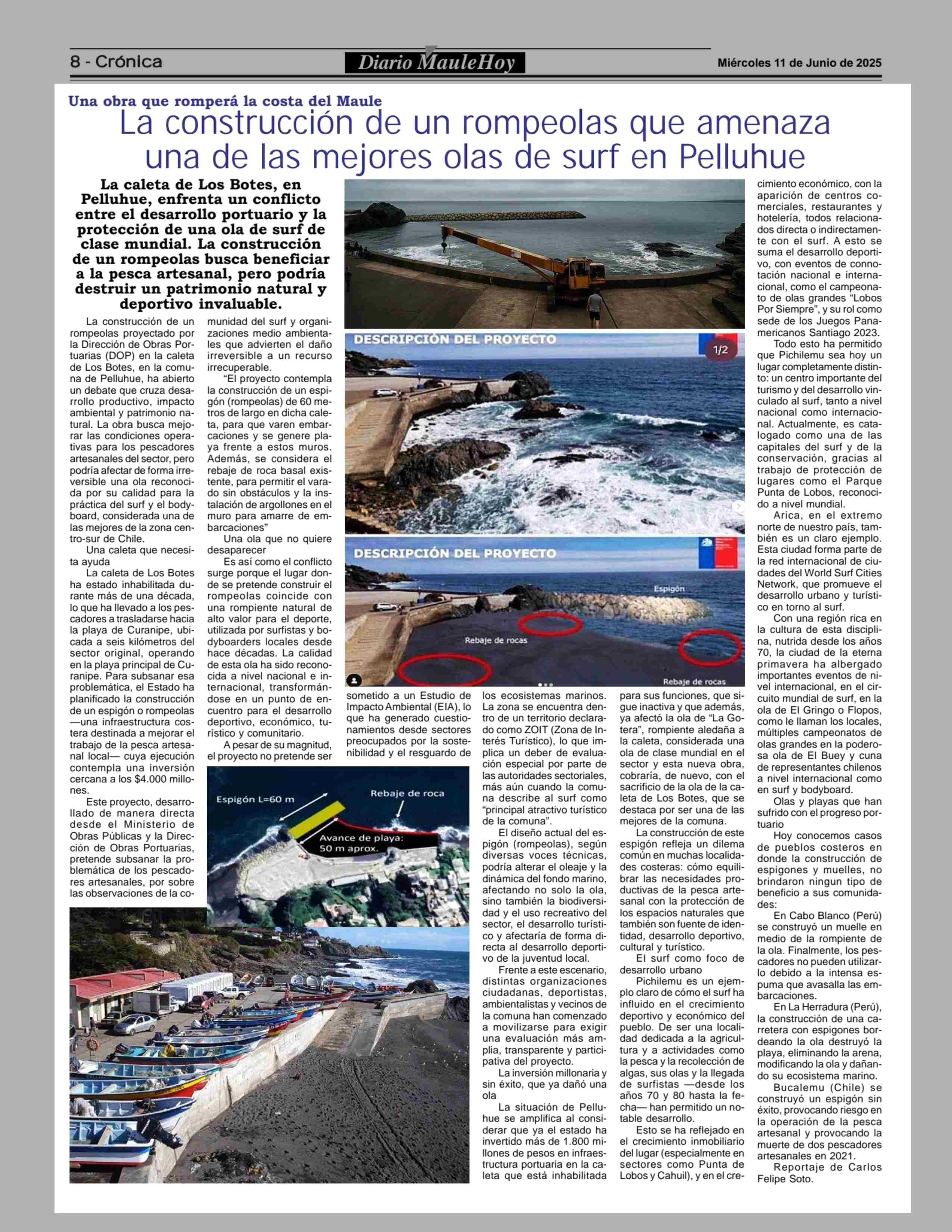 | Título: | La construcción de un rompeolas que amenaza una de las mejores olas de surf en Pelluhue |