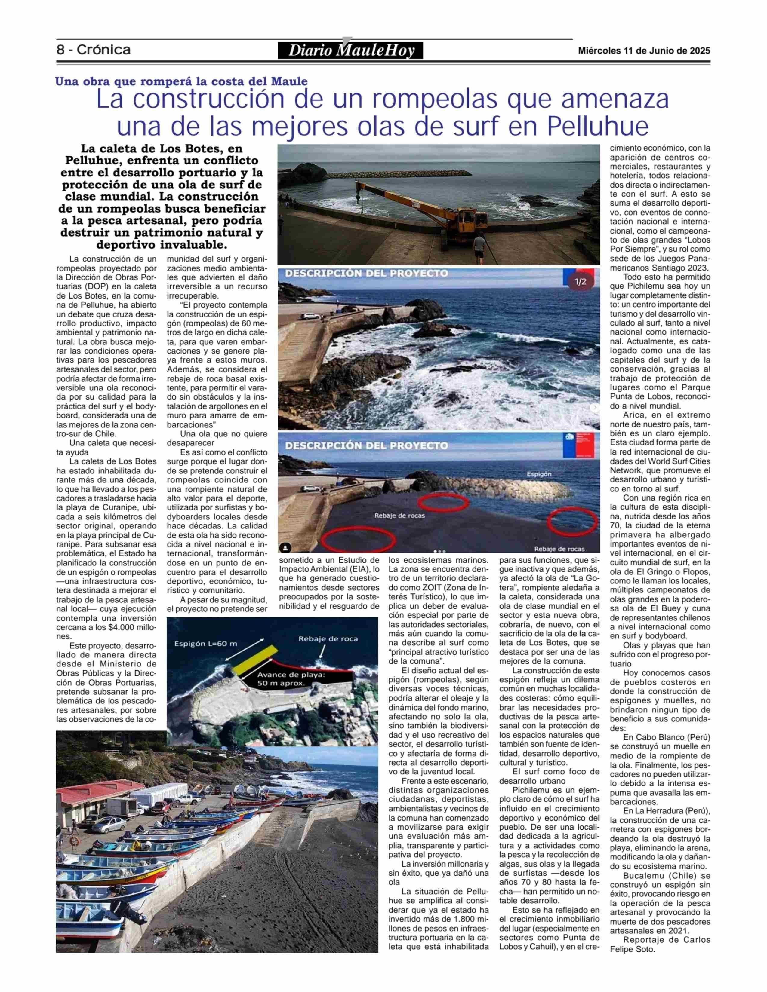 La construcción de un rompeolas que amenaza una de las mejores olas de surf en Pelluhue 11-06-2025 Maule Hoy |