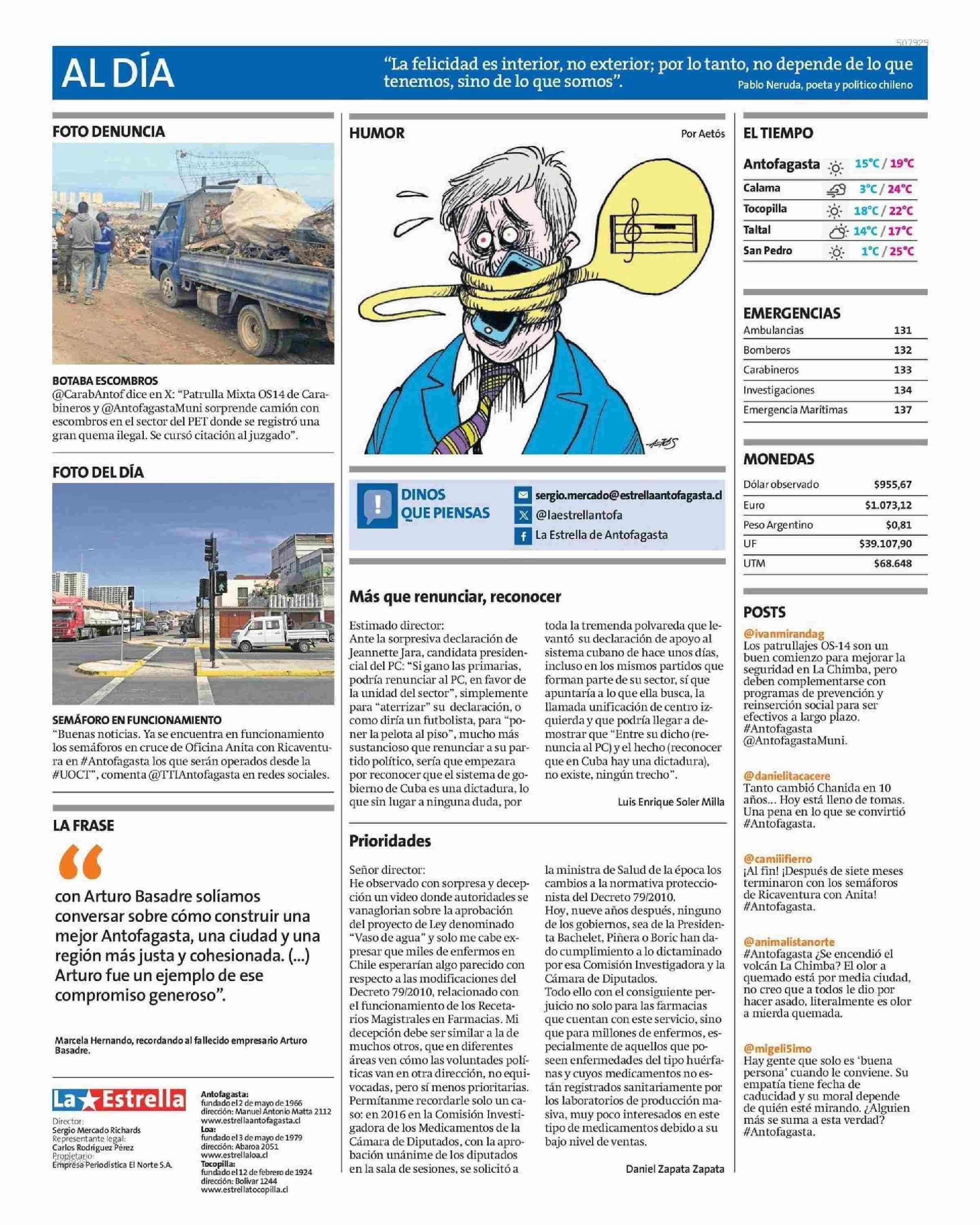 CARTAS: | Prioridades 05-05-2025 La Estrella de Antofagasta |