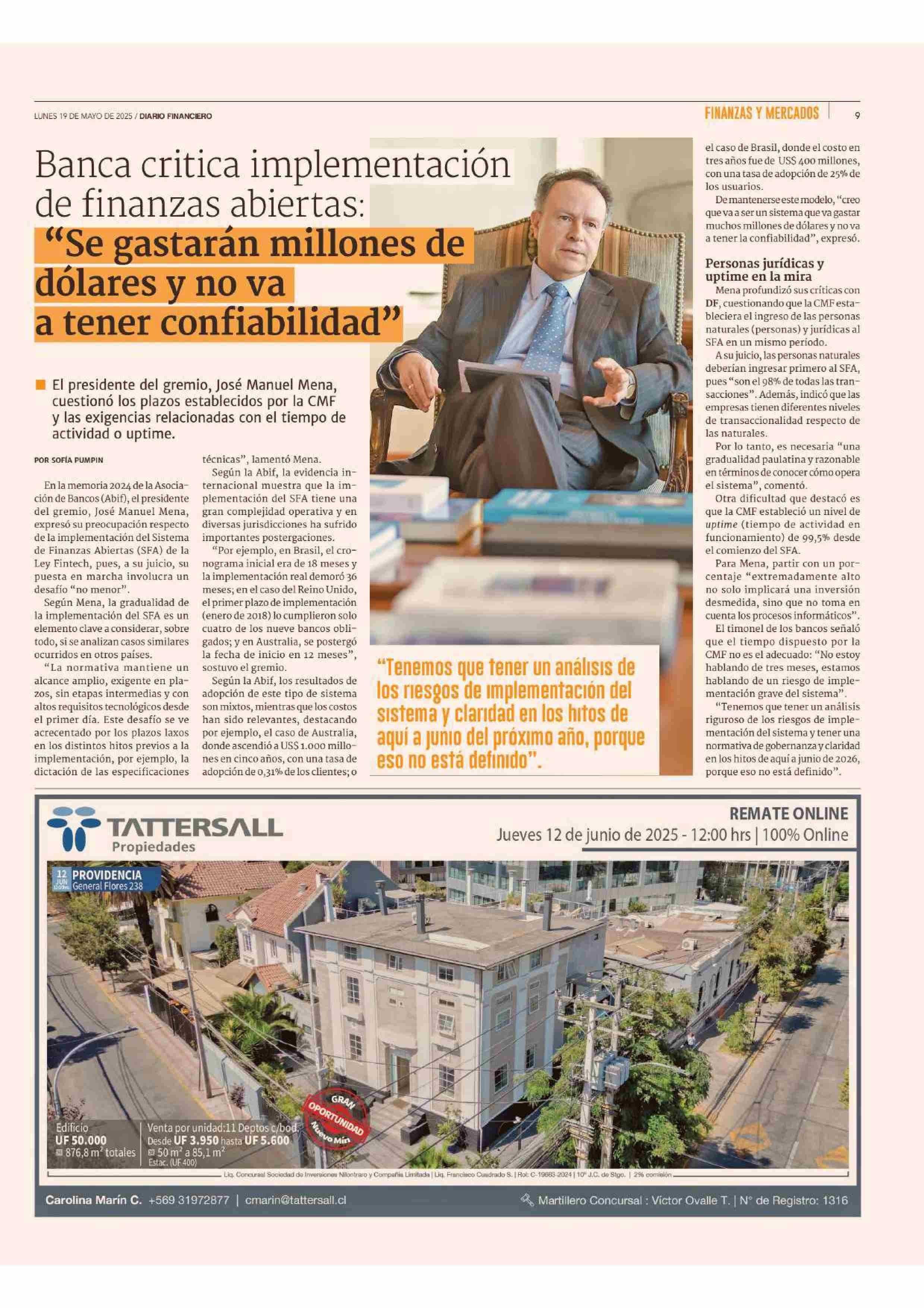 Fuente: Diario Financiero (Diario Financiero) Página(s): 9