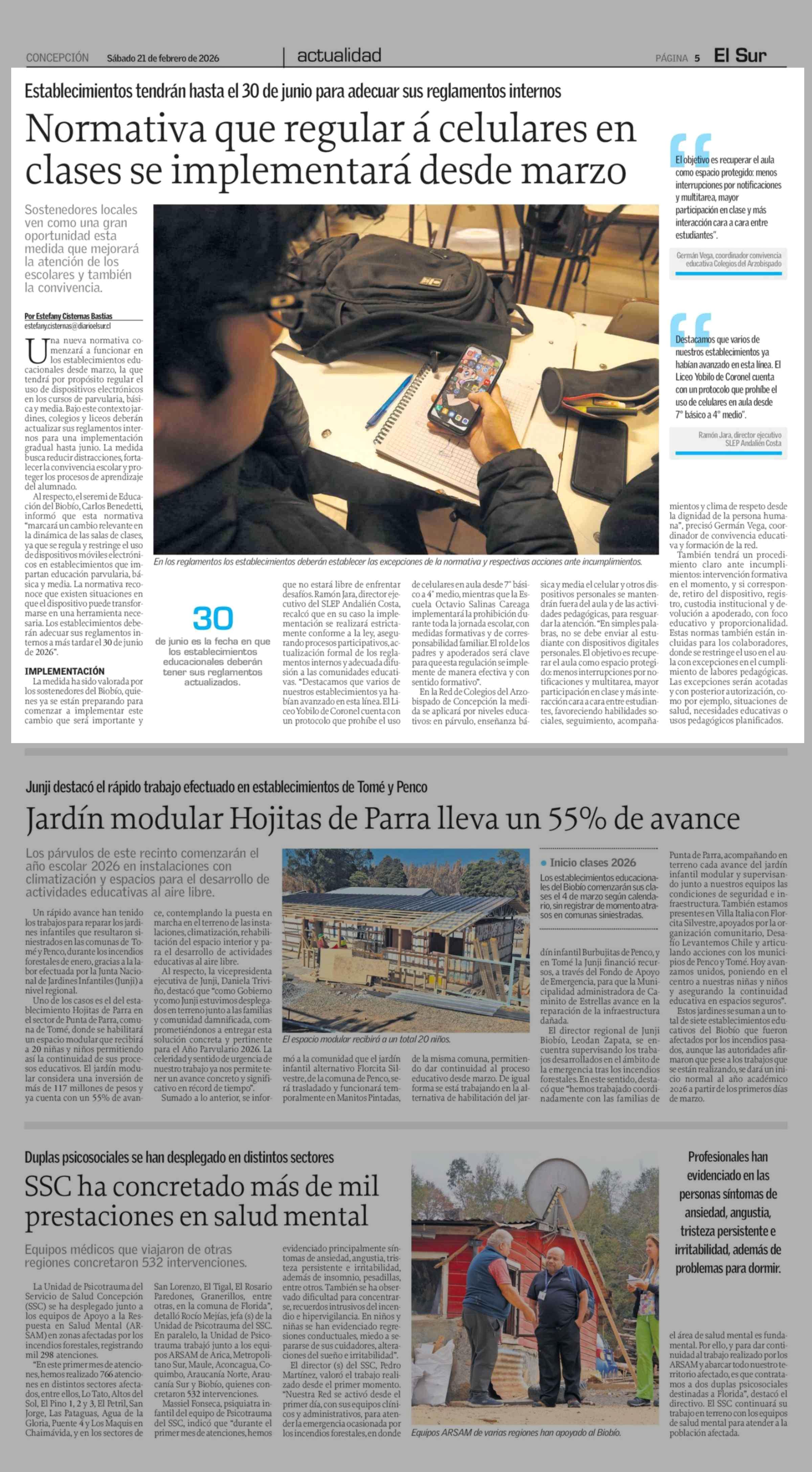 Normativa que regular á celulares en clases se implementará desde marzo 21-02-2026 El Sur |